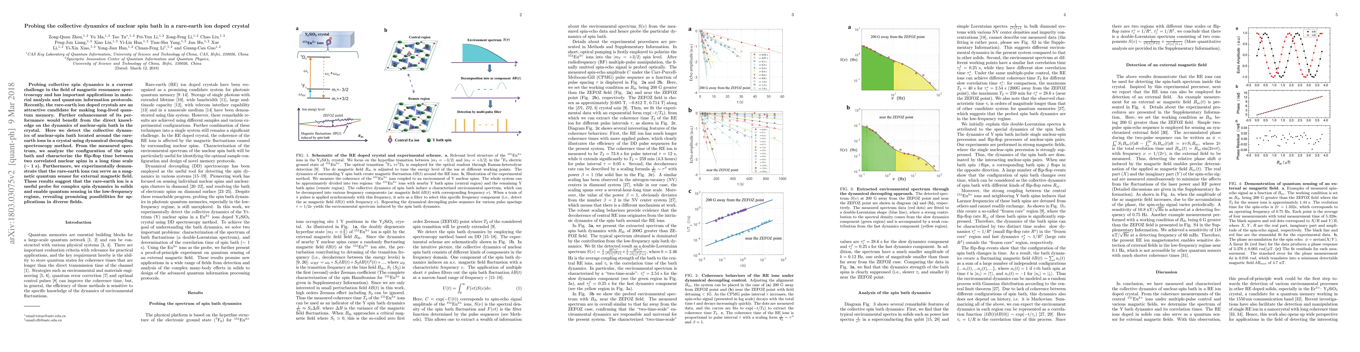 This paper investigates the collective dynamics of nuclear spin bath in rare-earth ion doped crystals using dynamical decoupling spectroscopy, revealing the configuration and flip-flop time between nuclear spins. It demonstrates the use of rare-earth ions as a magnetic quantum sensor, highlighting potential applications in quantum information and material analysis.
