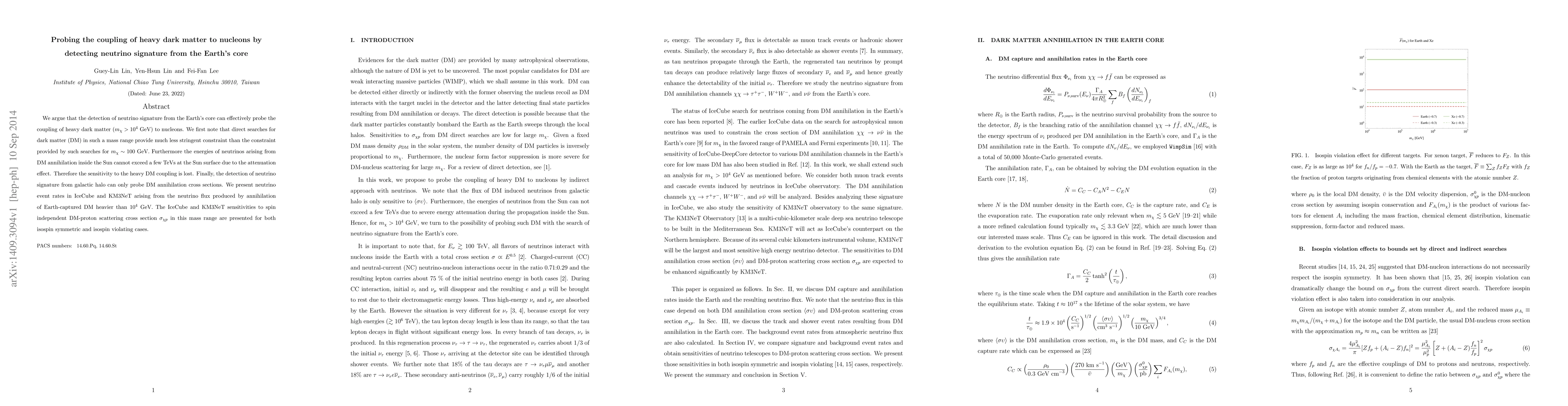 We argue that the detection of neutrino signature from the Earth's core can effectively probe the coupling of heavy dark matter ($m_{\chi}>10^{4}$ GeV) to nucleons. We first note that direct searches for dark matter (DM) in such a mass range provide much less stringent constraint than the constraint provided by such searches for $m_{\chi}\sim 100$ GeV. Furthermore the energies of neutrinos arising from DM annihilation inside the Sun cannot exceed a few TeVs at the Sun surface due to the attenuation effect. Therefore the sensitivity to the heavy DM coupling is lost. Finally, the detection of neutrino signature from galactic halo can only probe DM annihilation cross sections. We present neutrino event rates in IceCube and KM3NeT arising from the neutrino flux produced by annihilation of Earth-captured DM heavier than $10^{4}$ GeV. The IceCube and KM3NeT sensitivities to spin independent DM-proton scattering cross section $\sigma_{\chi p}$ in this mass range are presented for both isospin symmetric and isospin violating cases.
