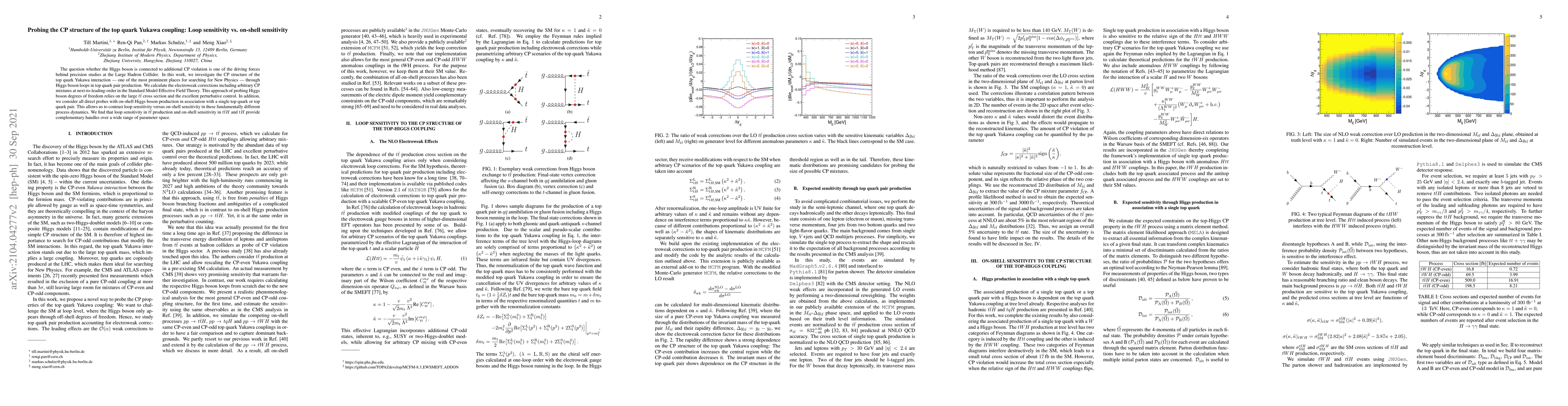 This paper explores the CP structure of the top quark Yukawa coupling through both loop and on-shell sensitivity in Higgs boson interactions, revealing complementary insights into potential new physics beyond the Standard Model. The study uses next-to-leading-order electroweak corrections in the Standard Model Effective Field Theory to compare loop-induced processes with direct on-shell Higgs production.
