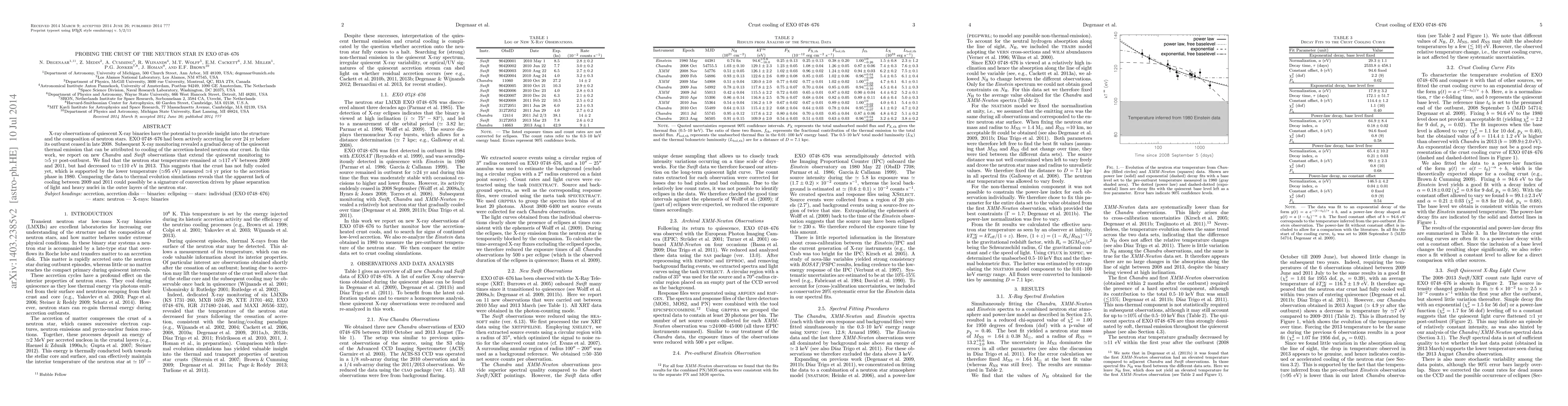X-ray observations of quiescent X-ray binaries have the potential to provide insight into the structure and the composition of neutron stars. EXO 0748-676 had been actively accreting for over 24 yr before its outburst ceased in late 2008. Subsequent X-ray monitoring revealed a gradual decay of the quiescent thermal emission that can be attributed to cooling of the accretion-heated neutron star crust. In this work, we report on new Chandra and Swift observations that extend the quiescent monitoring to ~5 yr post-outburst. We find that the neutron star temperature remained at ~117 eV between 2009 and 2011, but had decreased to ~110 eV in 2013. This suggests that the crust has not fully cooled yet, which is supported by the lower temperature of ~95 eV that was measured ~4 yr prior to the accretion phase in 1980. Comparing the data to thermal evolution simulations reveals that the apparent lack of cooling between 2009 and 2011 could possibly be a signature of convection driven by phase separation of light and heavy nuclei in the outer layers of the neutron star.