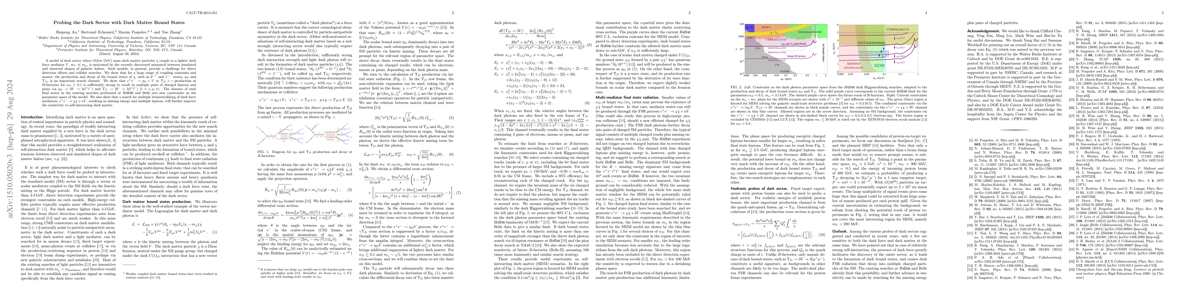 A model of dark sector where $O({\rm few~GeV})$ mass dark matter particles $\chi$ couple to a lighter dark force mediator $V$, $m_V \ll m_\chi$, is motivated by the recently discovered mismatch between simulated and observed shapes of galactic haloes. Such models, in general, provide a challenge for direct detection efforts and collider searches. We show that for a large range of coupling constants and masses, the production and decay of the bound states of $\chi$, such as $0^{-+}$ and $1^{--}$ states, $\eta_D$ and $ \Upsilon_D$, is an important search channel. We show that $e^+e^-\to \eta_D +V$ or $\Upsilon_D +\gamma$ production at $B$-factories for $\alpha_D > 0.1$ is sufficiently strong to result in multiple pairs of charged leptons and pions via $\eta_D\to 2V \to 2(l^+l^-)$ and $\Upsilon_D\to 3V \to 3(l^+l^-)$ $(l=e,\mu,\pi)$. The absence of such final states in the existing searches performed at \babar\ and Belle sets new constraints on the parameter space of the model. We also show that a search for multiple bremsstrahlung of dark force mediators, $e^+e^-\to \chi\bar\chi+nV$, resulting in missing energy and multiple leptons, will further improve the sensitivity to self-interacting dark matter.