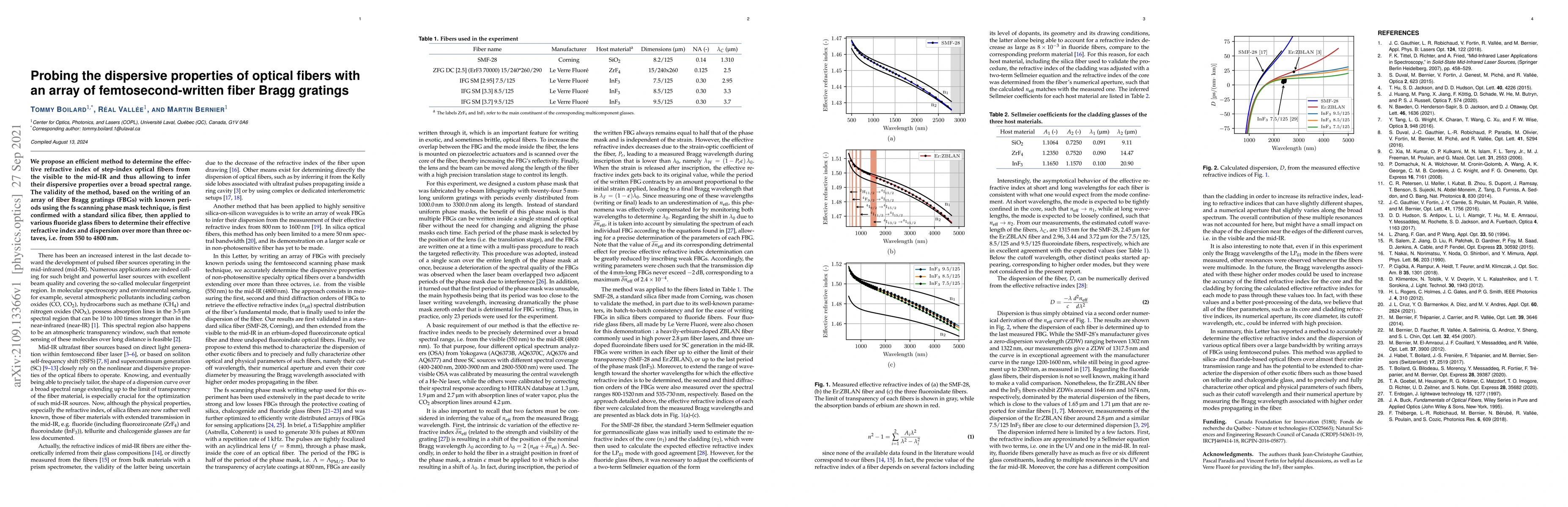 We propose an efficient method to determine the effective refractive index of step-index optical fibers from the visible to the mid-IR and thus allowing to infer their dispersive properties over a broad spectral range. The validity of the method, based on the writing of an array of fiber Bragg gratings (FBGs) with known periods using the fs scanning phase mask technique, is first confirmed with a standard silica fiber, then applied to various fluoride glass fibers to determine their effective refractive index and dispersion over more than three octaves, i.e. from 550 to 4800 nm.
