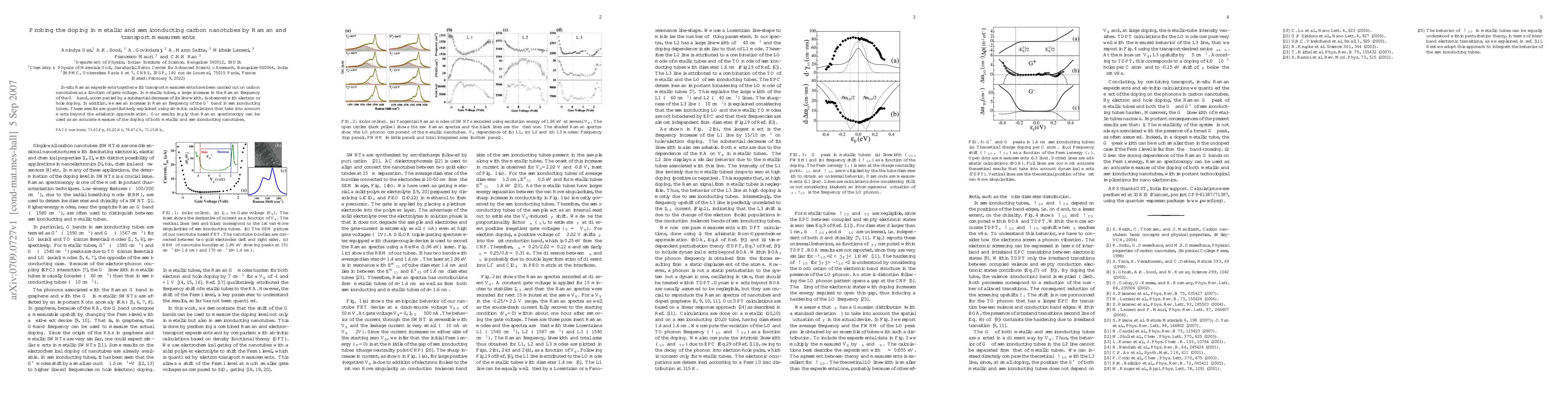 Summary: In-situ Raman and transport measurements reveal distinct Raman frequency shifts in metallic and semiconducting carbon nanotubes under electron or hole doping, validated by ab-initio calculations, indicating Raman spectroscopy's potential as a precise doping measurement tool for nanotubes.
