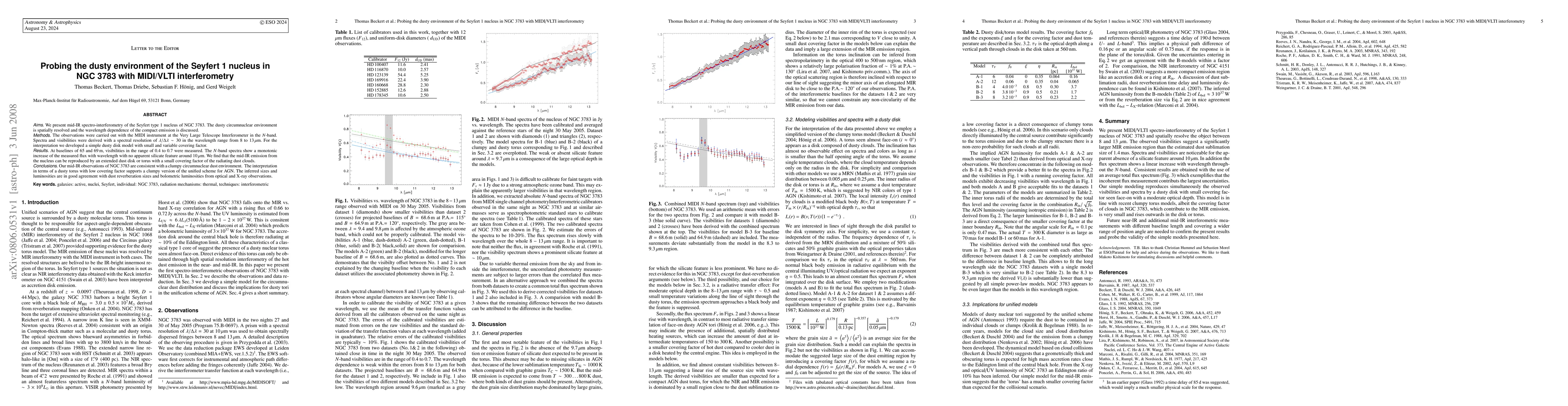The research utilizes MIDI/VLTI interferometry to study the dusty environment around the Seyfert 1 nucleus in NGC 3783. It finds that the mid-infrared emission from the nucleus aligns with an extended dust disk or torus model, having a small covering factor of radiating dust clouds. These findings support a clumpy version of the AGN unified scheme and correlate well with dust reverberation sizes and bolometric luminosities from optical and X-ray observations.