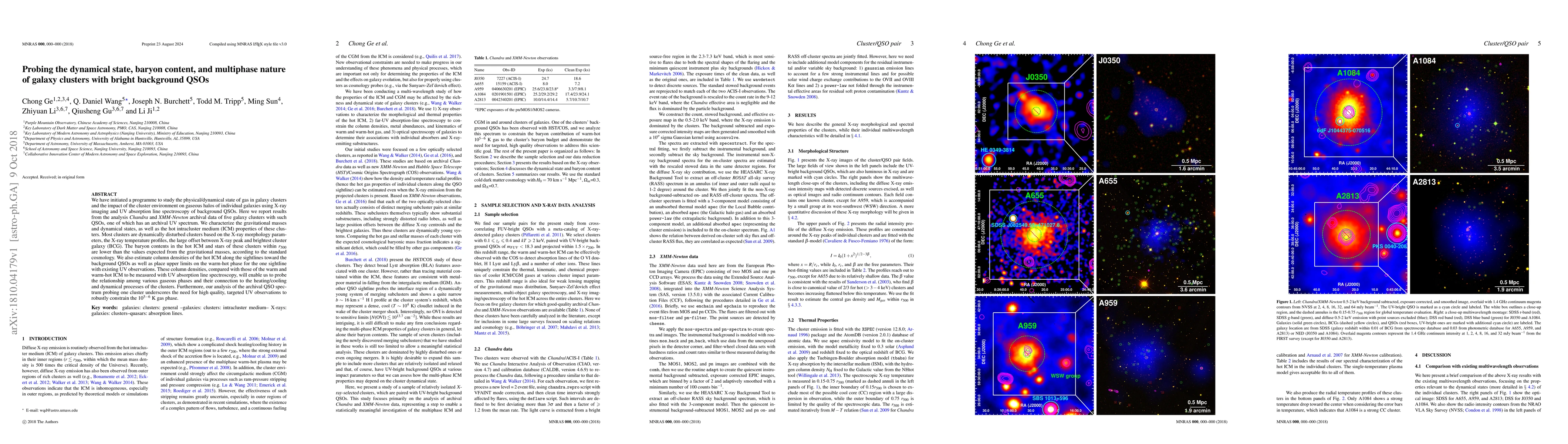 We have initiated a programme to study the physical/dynamical state of gas in galaxy clusters and the impact of the cluster environment on gaseous halos of individual galaxies using X-ray imaging and UV absorption line spectroscopy of background QSOs. Here we report results from the analysis Chandra and XMM-Newton archival data of five galaxy clusters with such QSOs, one of which has an archival UV spectrum. We characterize the gravitational masses and dynamical states, as well as the hot intracluster medium (ICM) properties of these clusters. Most clusters are dynamically disturbed clusters based on the X-ray morphology parameters, the X-ray temperature profiles, the large offset between X-ray peak and brightest cluster galaxy (BCG). The baryon contents in the hot ICM and stars of these clusters within $r_{500}$ are lower than the values expected from the gravitational masses, according to the standard cosmology. We also estimate column densities of the hot ICM along the sightlines toward the background QSOs as well as place upper limits on the warm-hot phase for the one sightline with existing UV observations. These column densities, compared with those of the warm and warm-hot ICM to be measured with UV absorption line spectroscopy, will enable us to probe the relationship among various gaseous phases and their connection to the heating/cooling and dynamical processes of the clusters. Furthermore, our analysis of the archival QSO spectrum probing one cluster underscores the need for high quality, targeted UV observations to robustly constrain the 10$^{5-6}$ K gas phase.