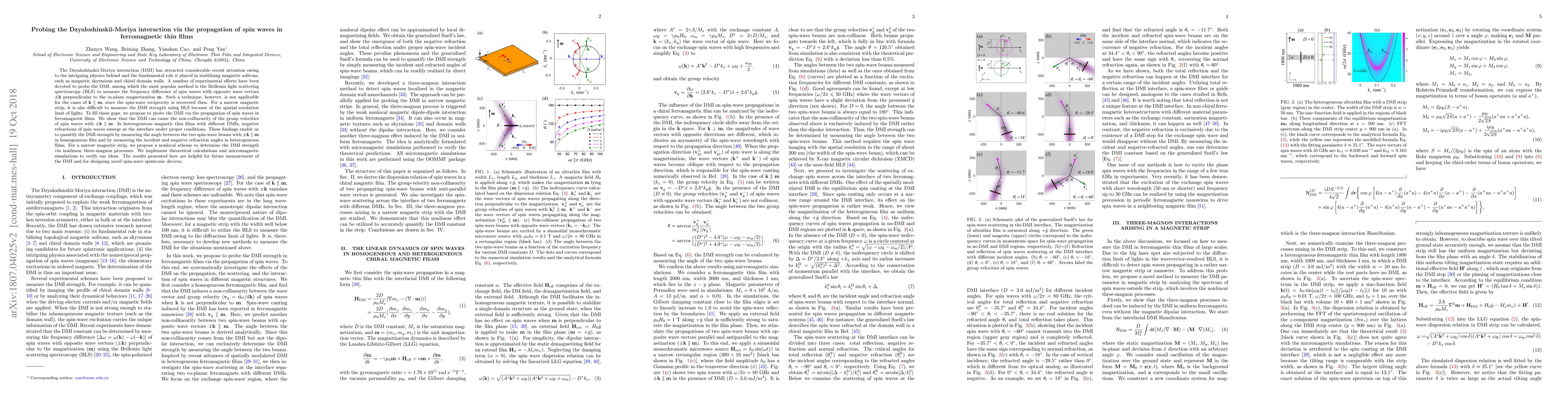 The Dzyaloshinskii-Moriya interaction (DMI) has attracted considerable recent attention owing to the intriguing physics behind and the fundamental role it played in stabilizing magnetic solitons, such as magnetic skyrmions and chiral domain walls. A number of experimental efforts have been devoted to probe the DMI, among which the most popular method is the Brillouin light scattering spectroscopy (BLS) to measure the frequency difference of spin waves with opposite wave vectors $\pm\mathbf{k}$ perpendicular to the in-plane magnetization $\mathbf{m}$. Such a technique, however, is not applicable for the cases of $\mathbf{k}\parallel\mathbf{m}$, since the spin-wave reciprocity is recovered then. For a narrow magnetic strip, it is also difficult to measure the DMI strength using BLS because of the spatial resolution limit of lights. To fill these gaps, we propose to probe the DMI via the propagation of spin waves in ferromagnetic films. We show that the DMI can cause the non-collinearity of the group velocities of spin waves with $\pm\mathbf{k}\parallel\mathbf{m}$. In heterogeneous magnetic thin films with different DMIs, negative refractions of spin waves emerge at the interface under proper conditions. These findings enable us to quantify the DMI strength by measuring the angle between the two spin-wave beams with $\pm\mathbf{k}\parallel\mathbf{m}$ in homogeneous film and by measuring the incident and negative refraction angles in heterogeneous films. For a narrow magnetic strip, we propose a nonlocal scheme to determine the DMI strength via nonlinear three-magnon processes. We implement theoretical calculations and micromagnetic simulations to verify our ideas. The results presented here are helpful for future measurement of the DMI and for designing novel spin-wave spintronic devices.