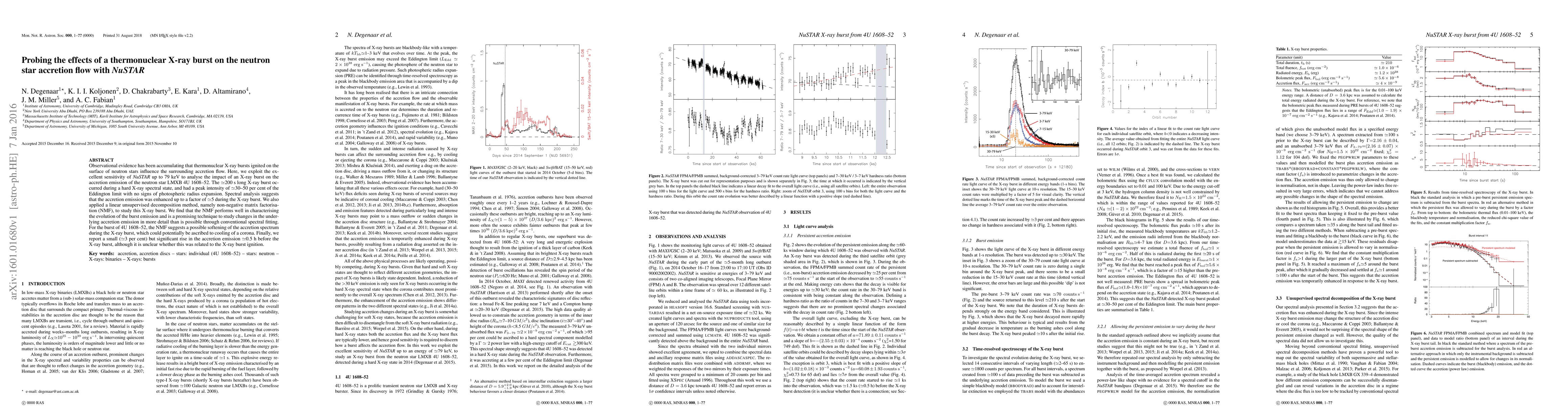 The study utilizes NuSTAR to examine the impact of a thermonuclear X-ray burst on the accretion flow around a neutron star in the LMXB 4U 1608-52. Key findings include a fivefold enhancement in accretion emission during the burst, potential coronal cooling suggested by non-negative matrix factorization (NMF), and a minor rise in accretion emission preceding the burst. The research highlights NMF as a promising method for analyzing accretion emission changes.