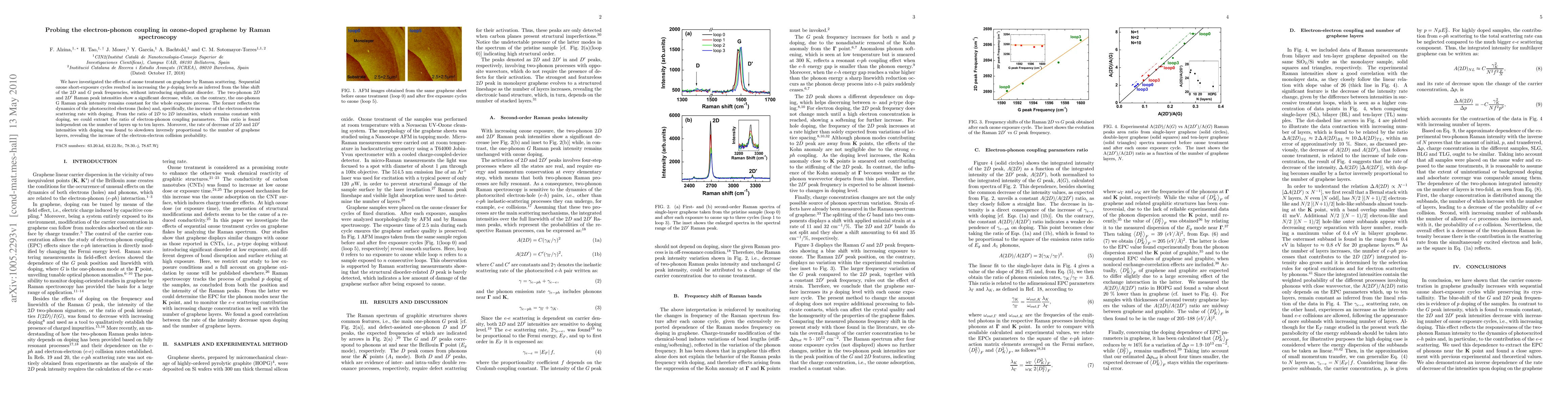 We have investigated the effects of ozone treatment on graphene by Raman scattering. Sequential ozone short-exposure cycles resulted in increasing the $p$ doping levels as inferred from the blue shift of the 2$D$ and $G$ peak frequencies, without introducing significant disorder. The two-phonon 2$D$ and 2$D'$ Raman peak intensities show a significant decrease, while, on the contrary, the one-phonon G Raman peak intensity remains constant for the whole exposure process. The former reflects the dynamics of the photoexcited electrons (holes) and, specifically, the increase of the electron-electron scattering rate with doping. From the ratio of 2$D$ to 2$D$ intensities, which remains constant with doping, we could extract the ratio of electron-phonon coupling parameters. This ratio is found independent on the number of layers up to ten layers. Moreover, the rate of decrease of 2$D$ and 2$D'$ intensities with doping was found to slowdown inversely proportional to the number of graphene layers, revealing the increase of the electron-electron collision probability.