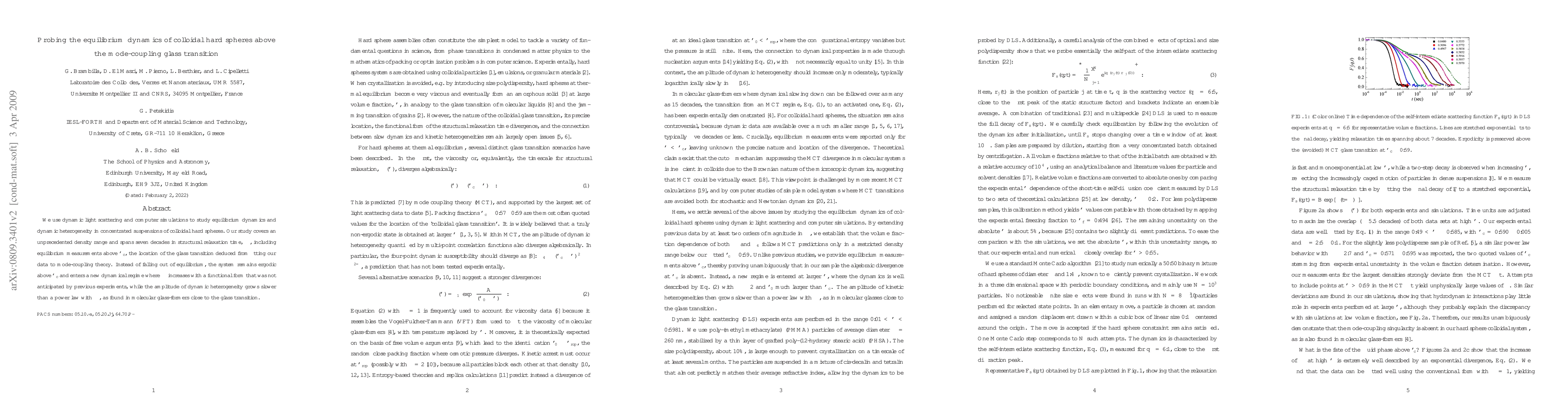 This study investigates the equilibrium dynamics and dynamic heterogeneity in colloidal hard spheres using dynamic light scattering and simulations. Contrary to expectations, the system remains ergodic above the glass transition density, entering a new dynamical regime with an unexpected functional form for relaxation time and a slower-than-power-law growth of dynamic heterogeneity.