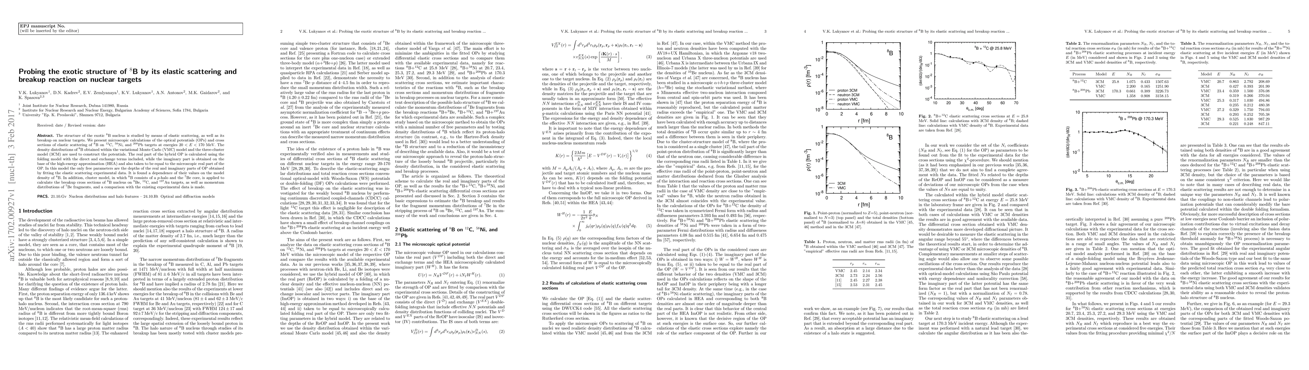 This research uses microscopic calculations to probe the structure of the exotic $^{8}$B nucleus via elastic scattering and breakup reactions on various targets. Optical potentials derived from $^{8}$B's density distributions, obtained through the variational Monte Carlo and three-cluster models, are employed. The study finds a dependency of optical potential depths on the $^{8}$B density model, validated by elastic scattering data. Additionally, a cluster model, depicting $^{8}$B as a p-halo and $^{7}$Be core, is applied to calculate breakup cross sections and momentum distributions, compared with experimental data.