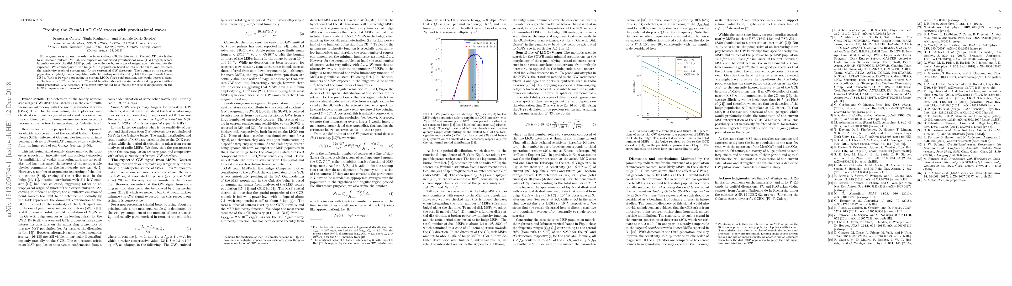 If the gamma-ray excess towards the inner Galaxy (GCE) detected in Fermi-LAT data is due to millisecond pulsars (MSPs), one expects an associated gravitational wave (GW) signal, whose intensity exceeds the disk MSP population emission by an order of magnitude. We compute the expected GW counterpart of the bulge MSP population based on fits of the GCE, and estimate the sensitivity reach of current and future terrestrial GW detectors. The bounds on the average population ellipticity $\varepsilon$ are competitive with the existing ones derived by LIGO/Virgo towards known MSPs. With a 10-year data taking in current LIGO/Virgo configuration, one would detect a signal at the level $\varepsilon\simeq 10^{-7}$, while $\varepsilon\simeq 10^{-8}$ would be attainable with a similar data taking period with a third generation GW detector. This sensitivity should be sufficient for crucial diagnostics on the GCE interpretation in terms of MSPs.
