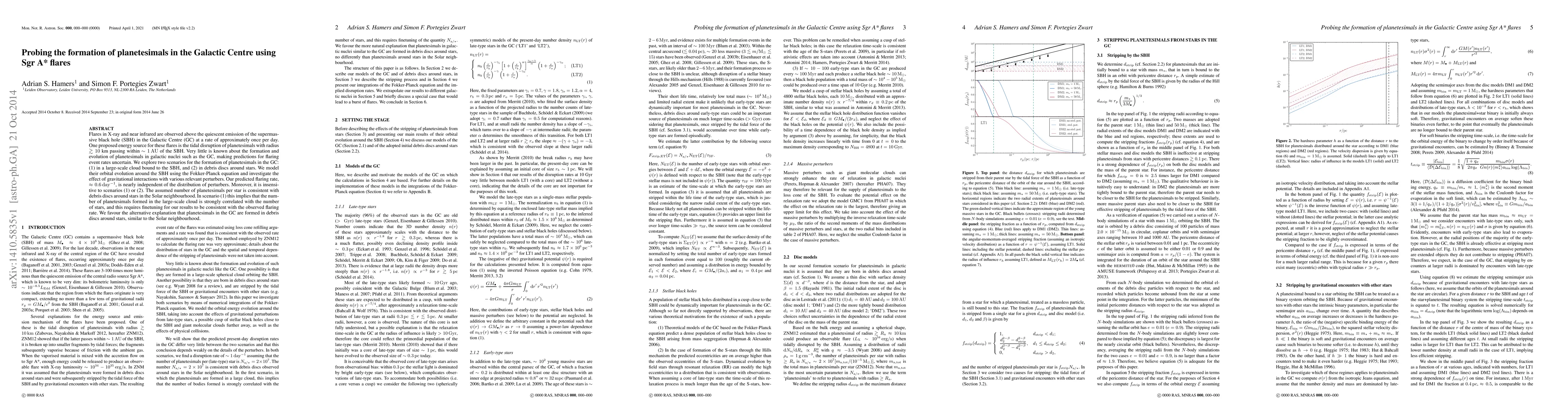Flares in X-ray and near infrared are observed above the quiescent emission of the supermassive black hole (SBH) in the Galactic Centre (GC) at a rate of approximately once per day. One proposed energy source for these flares is the tidal disruption of planetesimals with radius $\gtrsim 10$ km passing within $\sim$ 1 AU of the SBH. Very little is known about the formation and evolution of planetesimals in galactic nuclei such as the GC, making predictions for flaring event rates uncertain. We explore two scenarios for the formation of planetesimals in the GC: (1) in a large-scale cloud bound to the SBH, and (2) in debris discs around stars. We model their orbital evolution around the SBH using the Fokker-Planck equation and investigate the effect of gravitational interactions with various relevant perturbers. Our predicted flaring rate, $\approx 0.6 \, \mathrm{day^{-1}}$, is nearly independent of the distribution of perturbers. Moreover, it is insensitive to scenarios (1) or (2). The assumed number of planetesimals per star is consistent with debris discs around stars in the Solar neighbourhood. In scenario (1) this implies that the number of planetesimals formed in the large-scale cloud is strongly correlated with the number of stars, and this requires finetuning for our results to be consistent with the observed flaring rate. We favour the alternative explanation that planetesimals in the GC are formed in debris discs around stars, similar to the Solar neighbourhood.