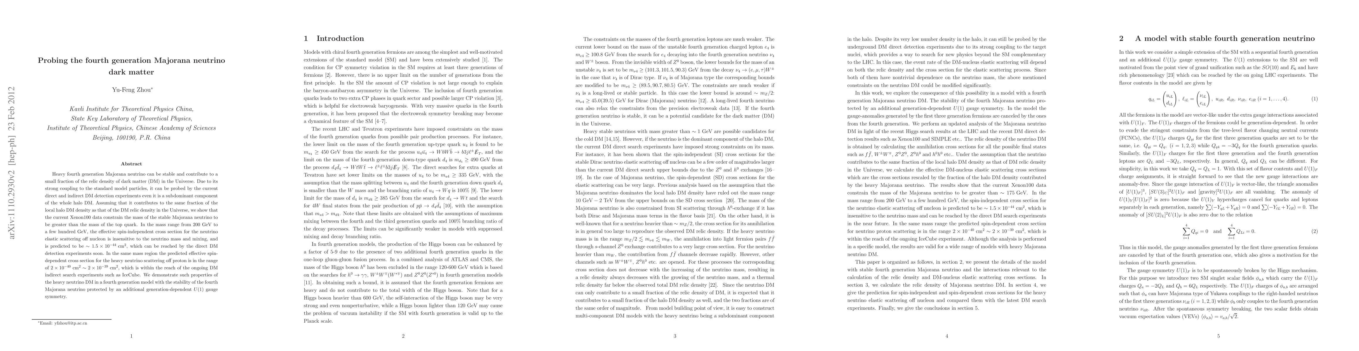 Researchers found that a heavy fourth generation Majorana neutrino could make up a small fraction of dark matter in the universe, with its mass potentially exceeding that of the top quark. Direct detection experiments may soon be able to detect such neutrinos through elastic scattering off nucleons or scattering off protons.