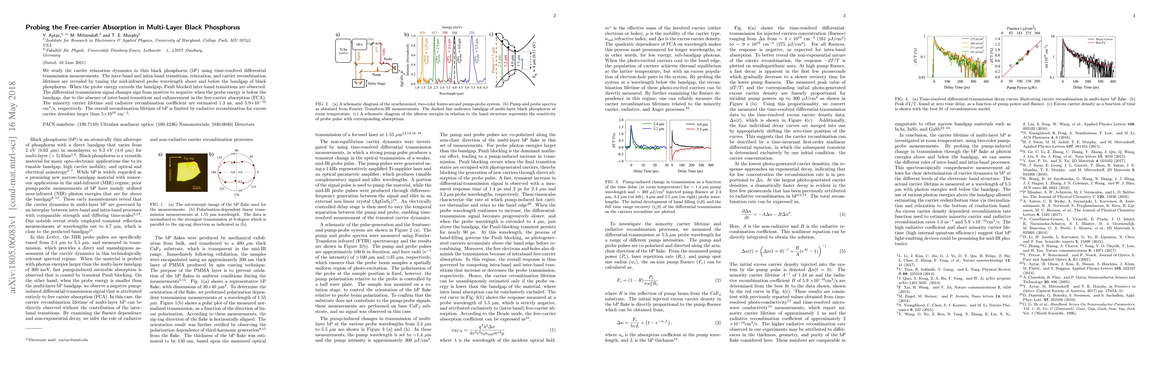 The paper presents a detailed analysis of free-carrier absorption in multi-layer black phosphorus, providing insights into carrier relaxation dynamics and recombination processes.