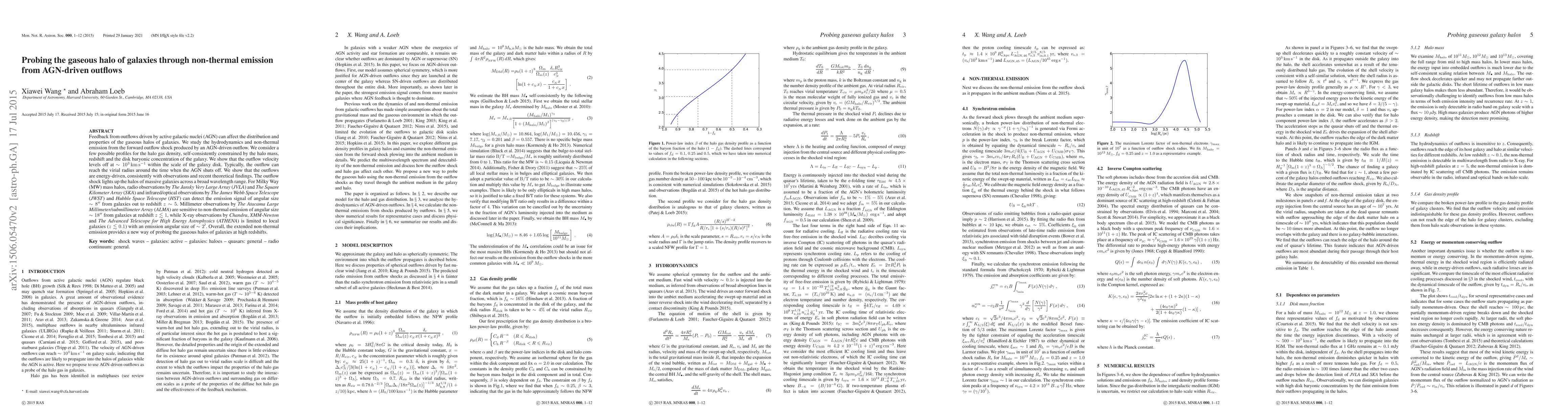 This paper investigates the hydrodynamics and non-thermal emission from AGN-driven outflows, showing that these outflows can reach the virial radius and affect the gaseous halos of galaxies. Observations from various telescopes can detect the non-thermal emission, providing a new method to probe the gaseous halos of galaxies, especially at high redshifts.