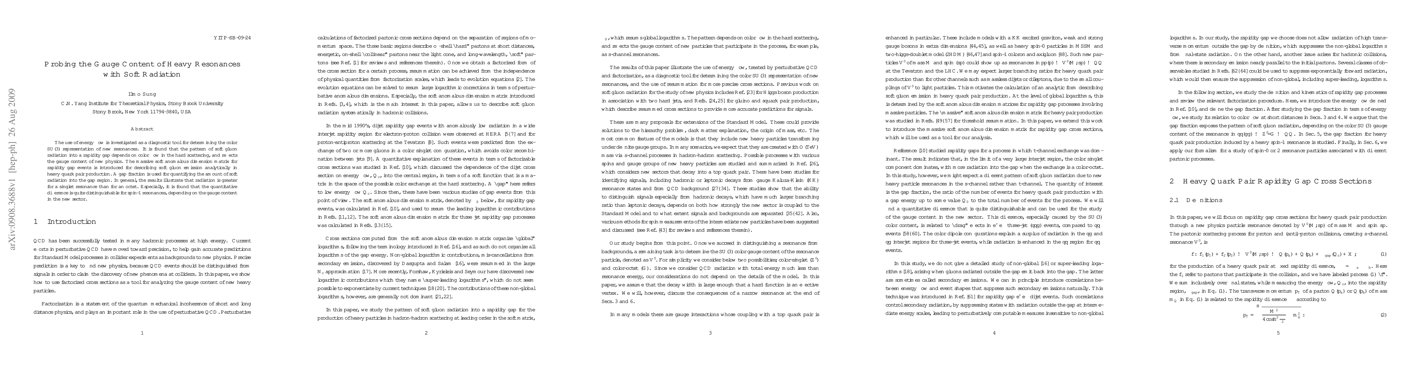 The use of energy flow is investigated as a diagnostic tool for determining the color SU(3) representation of new resonances. It is found that the pattern of soft gluon radiation into a rapidity gap depends on color flow in the hard scattering, and reflects the gauge content of new physics. The massive soft anomalous dimension matrix for rapidity gap events is introduced for describing soft gluon emission analytically in heavy quark pair production. A gap fraction is used for quantifying the amount of soft radiation into the gap region. In general, the results illustrate that radiation is greater for a singlet resonance than for an octet. Especially, it is found that the quantitative difference is quite distinguishable for spin-1 resonances, depending on the gauge content in the new sector.