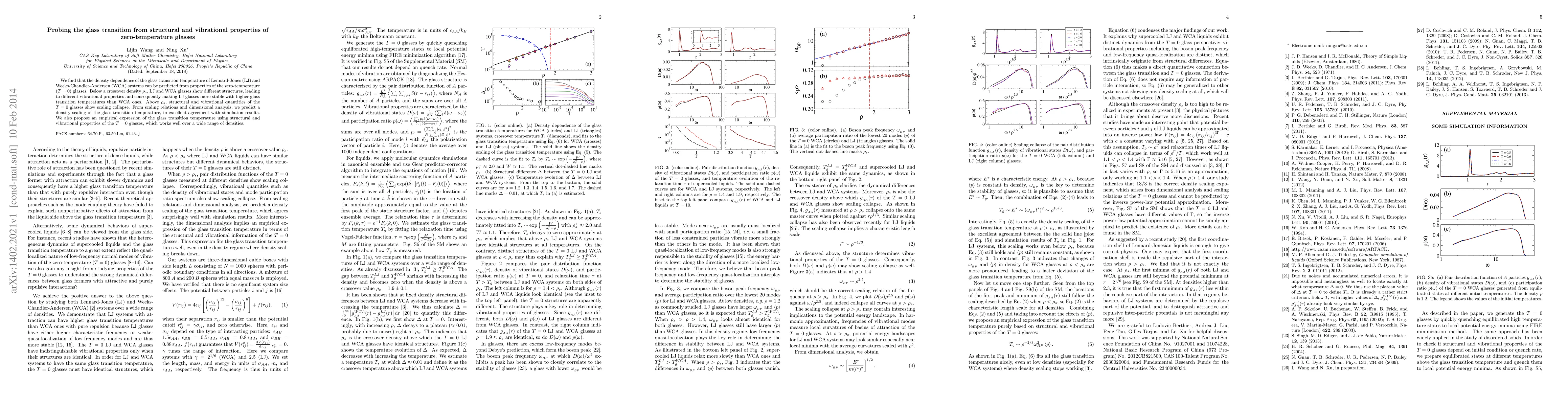 This study reveals that the glass transition temperature in Lennard-Jones and Weeks-Chandler-Andersen systems can be predicted from structural and vibrational properties of zero-temperature glasses, showing different stability levels and transition temperatures based on their distinct structural characteristics below a critical density. Above this density, both systems exhibit scaling behavior, allowing for accurate predictions via dimensional analysis.