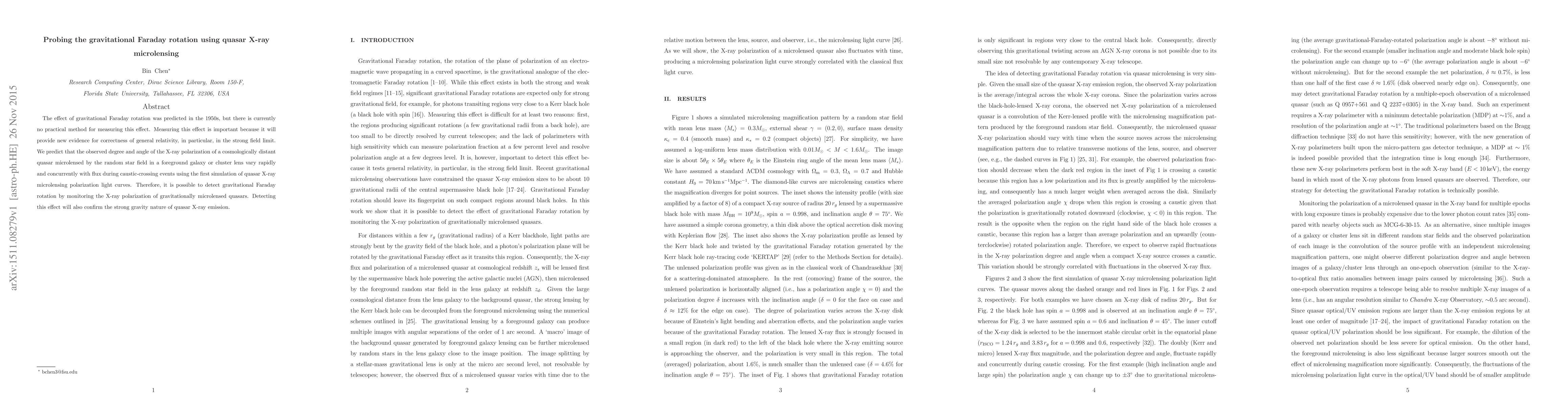 This paper proposes a method to measure gravitational Faraday rotation through the analysis of X-ray microlensing of distant quasars, predicting that the X-ray polarization angle will vary during caustic-crossing events, thus providing a practical means to test general relativity in strong gravitational fields.