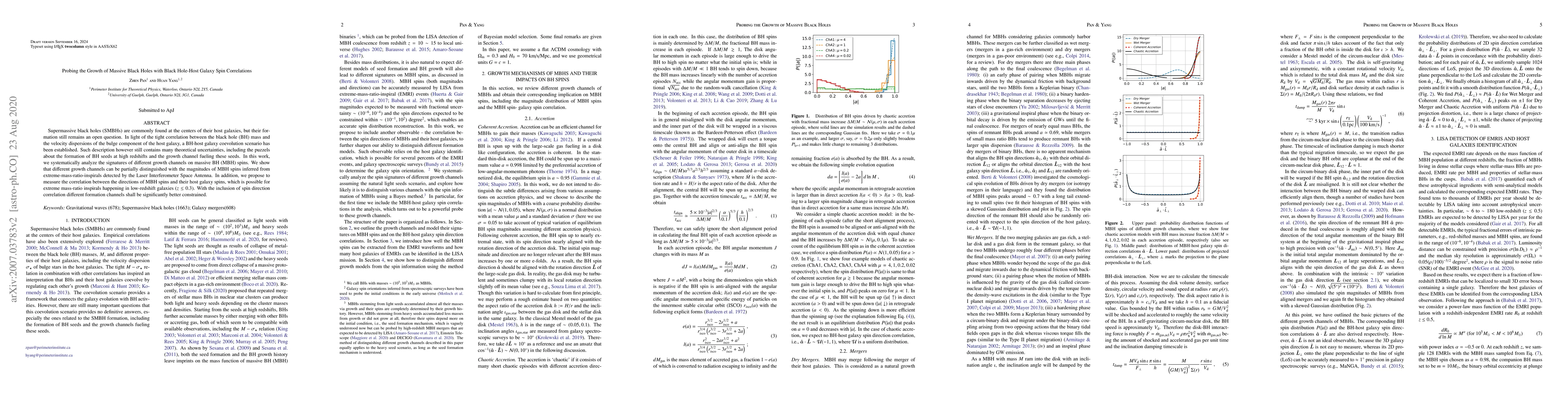 Supermassive black holes (SMBHs) are commonly found at the centers of their host galaxies, but their formation still remains an open question. In light of the tight correlation between the BH mass and the velocity dispersions of the bulge component of the host galaxy, a BH-host galaxy coevolution scenario has been established. Such description however still contains many theoretical uncertainties, including the puzzels about the formation of BH seeds at high redshifts and the growth channel fueling these seeds. In this work, we systematically analyze the signatures of different growth channels on MBH spins. We show that different growth channels can be partially distinguished with the magnitudes of MBH spins infered from extreme-mass-ratio-inspirals detected by the Laser Interferometer Space Antenna. In addition, we propose to measure the correlation between the directions of MBH spins and their host galaxy spins, which is possible for extreme mass-ratio inspirals happening in low-redshift galaxies ($z \le 0.3$). With the inclusion of spin direction correlation different formation channels shall be significantly better constrained.