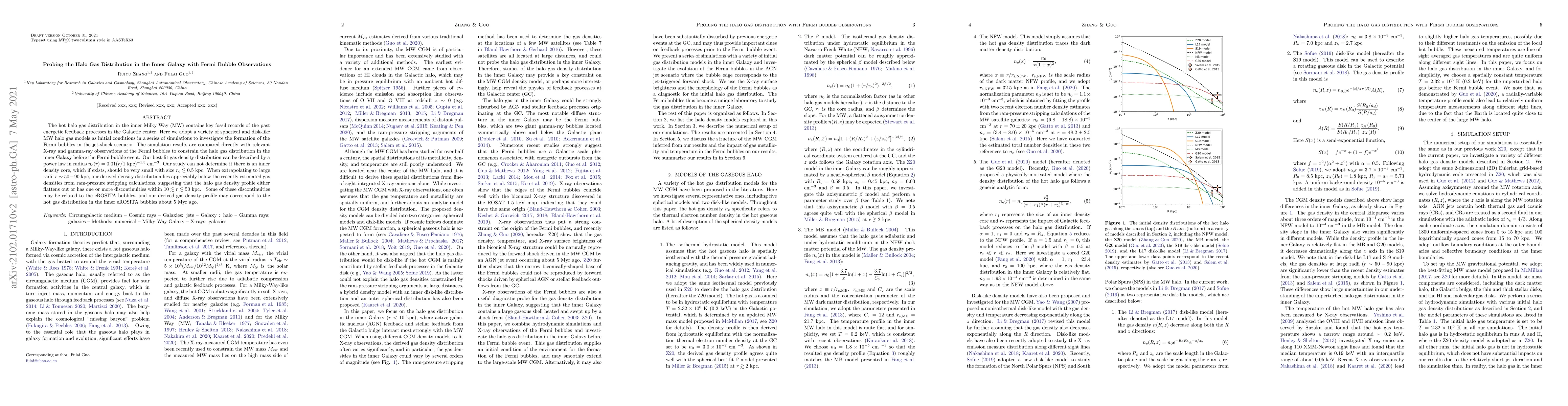 This study uses simulations to model the formation of Fermi bubbles in the Milky Way's inner halo gas, finding a best-fit gas density distribution described by $n_{\rm e}(r)=0.01(r/1 \text{~kpc})^{-1.5}$ cm$^{-3}$. The research suggests the presence of discontinuities or flattening in the gas density profile within $10 \lesssim r \lesssim 50$ kpc.