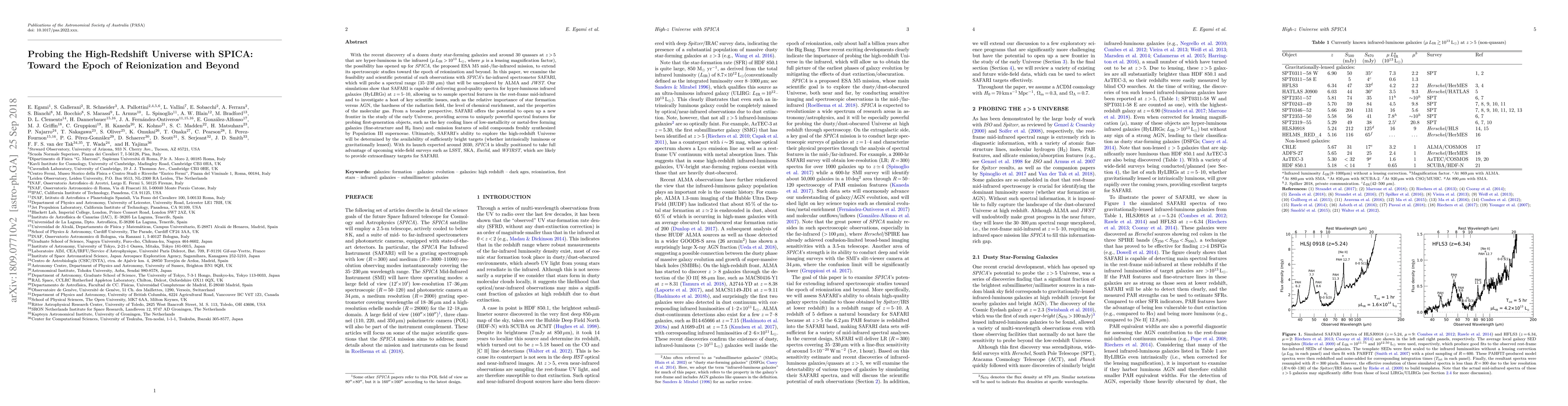 With the recent discovery of a dozen dusty star-forming galaxies and around 30 quasars at z>5 that are hyper-luminous in the infrared ($\mu$$L_{\rm IR}>10^{13}$ L$_{\odot}$, where $\mu$ is a lensing magnification factor), the possibility has opened up for SPICA, the proposed ESA M5 mid-/far-infrared mission, to extend its spectroscopic studies toward the epoch of reionization and beyond. In this paper, we examine the feasibility and scientific potential of such observations with SPICA's far-infrared spectrometer SAFARI, which will probe a spectral range (35-230 $\mu$m) that will be unexplored by ALMA and JWST. Our simulations show that SAFARI is capable of delivering good-quality spectra for hyper-luminous infrared galaxies (HyLIRGs) at z=5-10, allowing us to sample spectral features in the rest-frame mid-infrared and to investigate a host of key scientific issues, such as the relative importance of star formation versus AGN, the hardness of the radiation field, the level of chemical enrichment, and the properties of the molecular gas. From a broader perspective, SAFARI offers the potential to open up a new frontier in the study of the early Universe, providing access to uniquely powerful spectral features for probing first-generation objects, such as the key cooling lines of low-metallicity or metal-free forming galaxies (fine-structure and H2 lines) and emission features of solid compounds freshly synthesized by Population III supernovae. Ultimately, SAFARI's ability to explore the high-redshift Universe will be determined by the availability of sufficiently bright targets (whether intrinsically luminous or gravitationally lensed). With its launch expected around 2030, SPICA is ideally positioned to take full advantage of upcoming wide-field surveys such as LSST, SKA, Euclid, and WFIRST, which are likely to provide extraordinary targets for SAFARI.