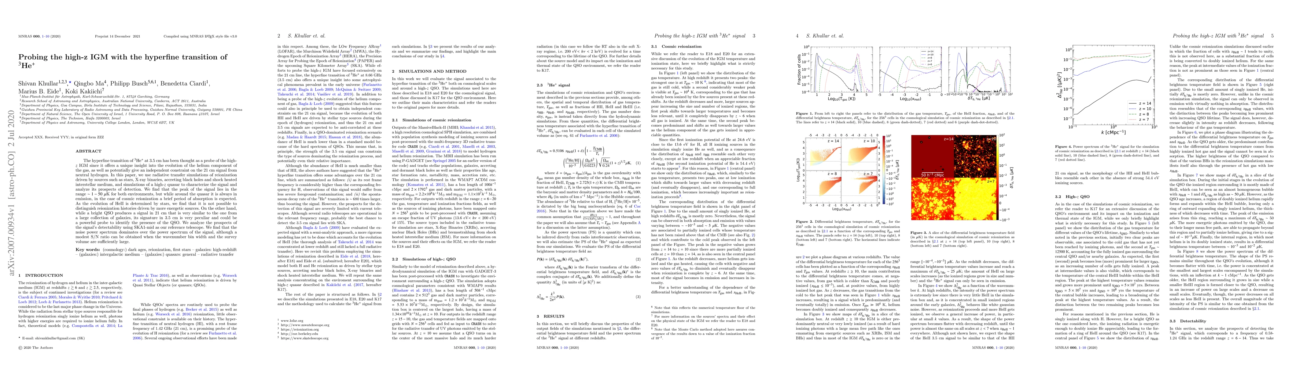 The hyperfine transition of $^3$He$^+$ at 3.5cm has been thought as a probe of the high-z IGM since it offers a unique insight into the evolution of the helium component of the gas, as well as potentially give an independent constraint on the 21cm signal from neutral hydrogen. In this paper, we use radiative transfer simulations of reionization driven by sources such as stars, X-ray binaries, accreting black holes and shock heated interstellar medium, and simulations of a high-z quasar to characterize the signal and analyze its prospects of detection. We find that the peak of the signal lies in the range 1-50 $\mu$K for both environments, but while around the quasar it is always in emission, in the case of cosmic reionization a brief period of absorption is expected. As the evolution of HeII is determined by stars, we find that it is not possible to distinguish reionization histories driven by more energetic sources. On the other hand, while a bright QSO produces a signal in 21cm that is very similar to the one from a large collection of galaxies, its signature in 3.5cm is very peculiar and could be a powerful probe to identify the presence of the QSO. We analyze the prospects of the signal's detectability using SKA1-mid as our reference telescope. We find that the noise power spectrum dominates over the power spectrum of the signal, although a modest S/N ratio can be obtained when the wavenumber bin width and the survey volume are sufficiently large.