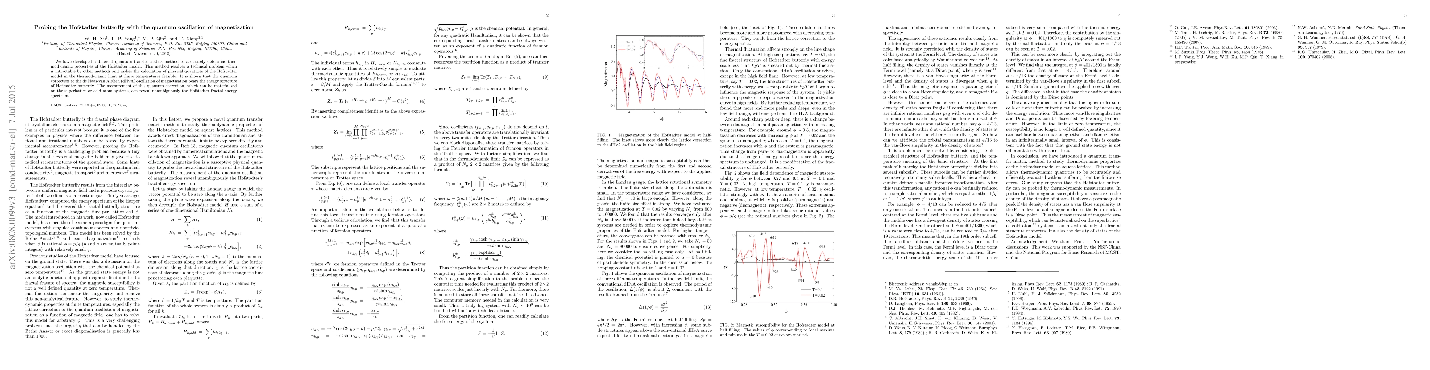 This paper introduces a novel quantum transfer matrix method to calculate thermodynamic properties of the Hofstadter model, resolving previous technical issues. The study reveals that quantum oscillations in magnetization exhibit the Hofstadter butterfly's fractal energy structure, providing a means to measure this spectrum in superlattice or cold atom systems.