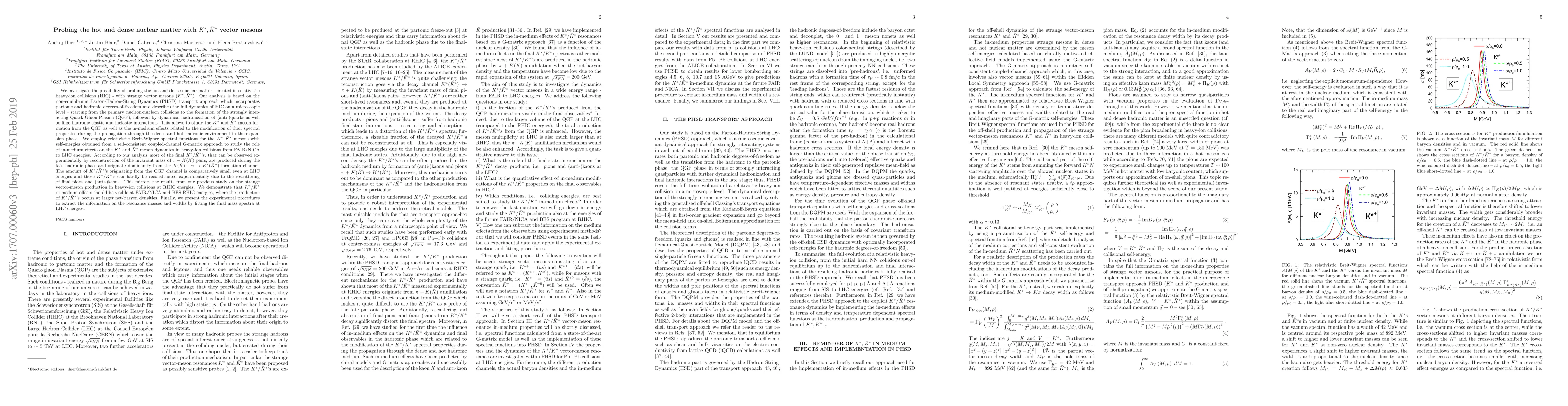 We investigate probing the hot and dense nuclear matter with strange vector mesons ($K^*, \bar{K}^*$). Our analysis is based on PHSD which incorporates partonic and hadronic dof and describes the full dynamics of HICs. This allows to study the $K^*$ and $\bar{K}^*$ meson formation from the QGP and the in-medium effects related to the modification of their properties during the propagation in dense and hot matter. We employ relativistic Breit-Wigner spectral functions for the $K^*,\bar{K}^*$ mesons with self-energies obtained from a G-matrix approach to study the role of in-medium effects on the $K^*$ and $\bar{K}^*$ meson dynamics in HIC from FAIR/NICA to LHC energies. According to our analysis most of the final $K^*/\bar{K}^*$s, that can be observed experimentally, are produced during the late hadronic phase and stem dominantly from the $K (\bar{K}) + \pi \to K^*(\bar{K}^*)$ formation channel. The amount of $K^*/\bar{K}^*$s originating from the QGP channel is comparatively small even at LHC energies and such $K^*/\bar{K}^*$s can hardly be reconstructed experimentally due to the rescattering of final pions and (anti-)kaons. This mirrors the results from our previous study on the strange vector-meson production in HICs at RHIC energies. The influence of the in-medium effects on the dynamics of the $K^*/\bar{K}^*$ is rather small since they are mostly produced at low baryon densities. Additional cuts on the shape of the observed signal and the range of the invariant mass region of the $K^*/\bar{K}^*$ also affect the final spectra. We demonstrate that the $K^*/\bar{K}^*$ in-medium effects are more visible at lower beam energy, e.g. FAIR/NICA and BES RHIC energies, where the production of $K^*/\bar{K}^*$s occurs at larger baryon densities. Finally, we present the experimental procedures to extract information on the in-medium masses and widths by fitting final mass spectra at LHC energies.