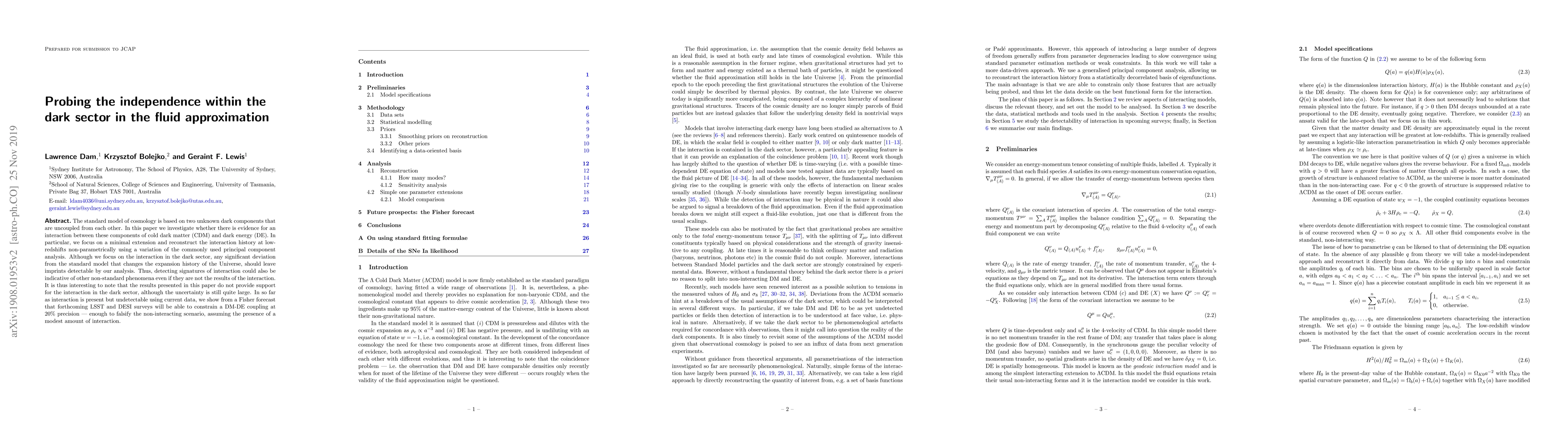 The standard model of cosmology is based on two unknown dark components that are uncoupled from each other. In this paper we investigate whether there is evidence for an interaction between these components of cold dark matter (CDM) and dark energy (DE). In particular, we focus on a minimal extension and reconstruct the interaction history at low-redshifts non-parametrically using a variation of the commonly used principal component analysis. Although we focus on the interaction in the dark sector, any significant deviation from the standard model that changes the expansion history of the Universe, should leave imprints detectable by our analysis. Thus, detecting signatures of interaction could also be indicative of other non-standard phenomena even if they are not the results of the interaction. It is thus interesting to note that the results presented in this paper do not provide support for the interaction in the dark sector, although the uncertainty is still quite large. In so far as interaction is present but undetectable using current data, we show from a Fisher forecast that forthcoming LSST and DESI surveys will be able to constrain a DM-DE coupling at $20\%$ precision --- enough to falsify the non-interacting scenario, assuming the presence of a modest amount of interaction.