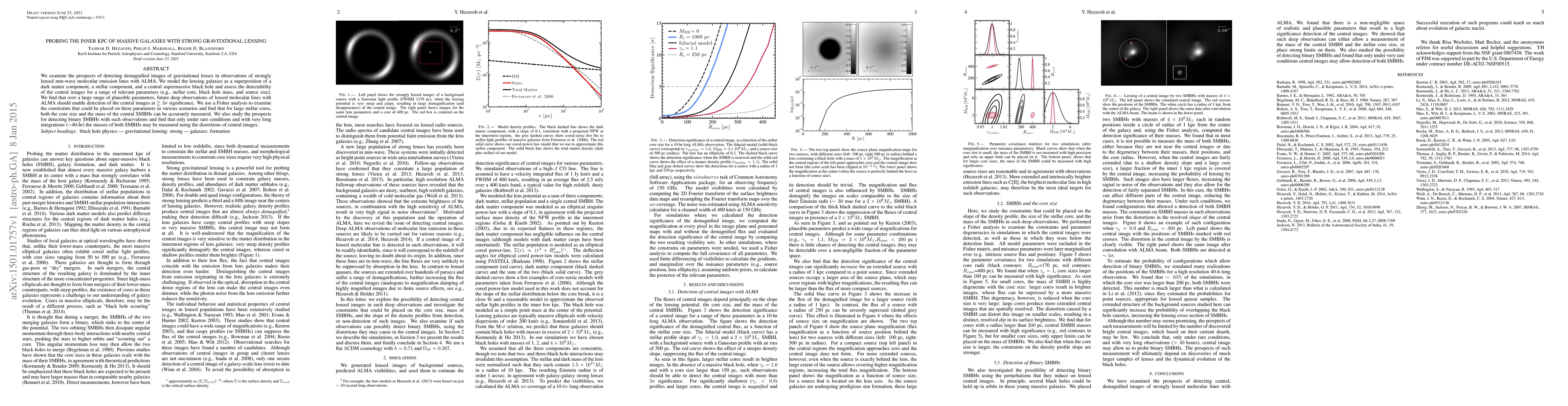 We examine the prospects of detecting demagnified images of gravitational lenses in observations of strongly lensed mm-wave molecular emission lines with ALMA. We model the lensing galaxies as a superposition of a dark matter component, a stellar component, and a central supermassive black hole and assess the detectability of the central images for a range of relevant parameters (e.g., stellar core, black hole mass, and source size). We find that over a large range of plausible parameters, future deep observations of lensed molecular lines with ALMA should enable detection of the central images at $\gtrsim 3\sigma$ significance. We use a Fisher analysis to examine the constraints that could be placed on these parameters in various scenarios and find that for large stellar cores, both the core size and the mass of the central SMBHs can be accurately measured. We also study the prospects for detecting binary SMBHs with such observations and find that only under rare conditions and with very long integrations ($\sim$40-hr) the masses of both SMBHs may be measured using the distortions of central images.