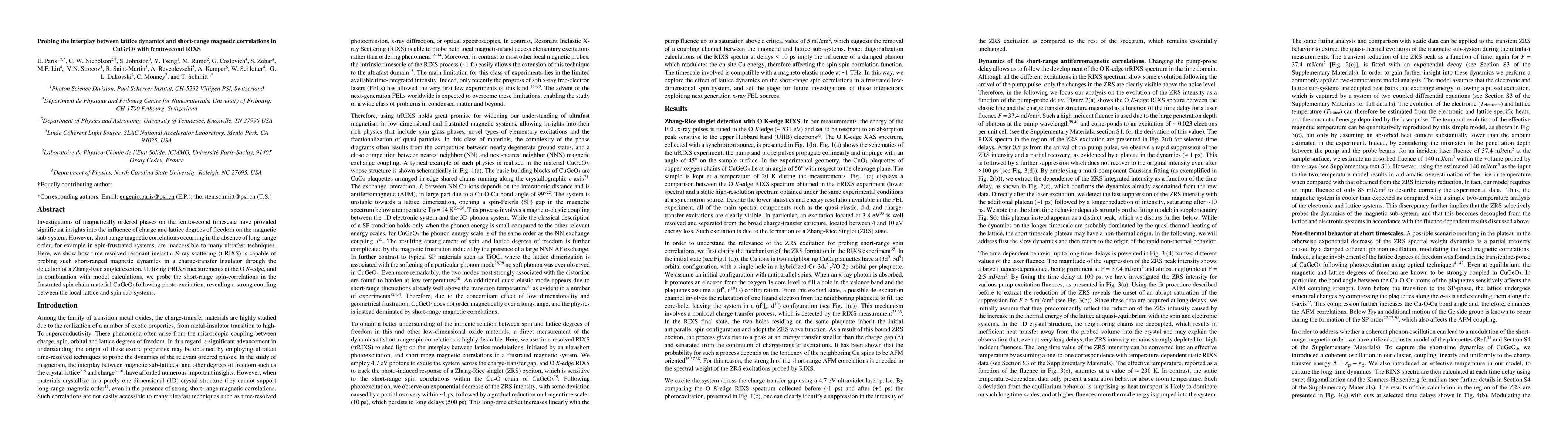This study employs time-resolved resonant inelastic X-ray scattering (trRIXS) to investigate short-range magnetic correlations in the spin-frustrated material CuGeO3, revealing a strong coupling between lattice dynamics and spin sub-systems following photo-excitation. The trRIXS technique reveals local lattice-spin interactions through the detection of a Zhang-Rice singlet exciton.