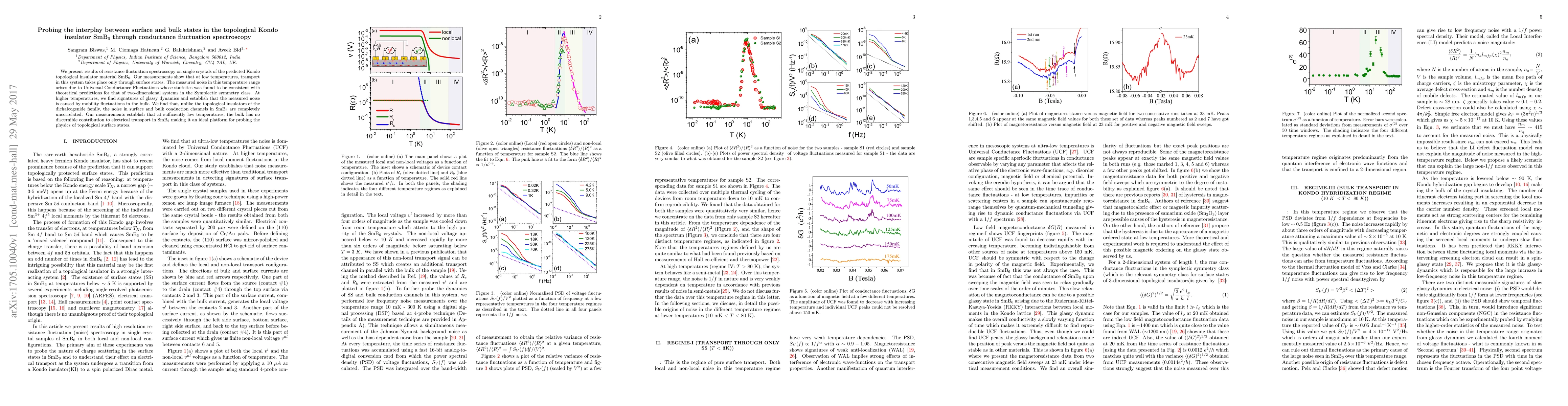 This study uses resistance fluctuation spectroscopy to reveal that in SmB$_6$ at low temperatures, transport occurs solely through surface states, exhibiting Universal Conductance Fluctuations. At higher temperatures, bulk mobility fluctuations dominate, showing no correlation with surface state noise, confirming the bulk's negligible contribution to transport at low temperatures.