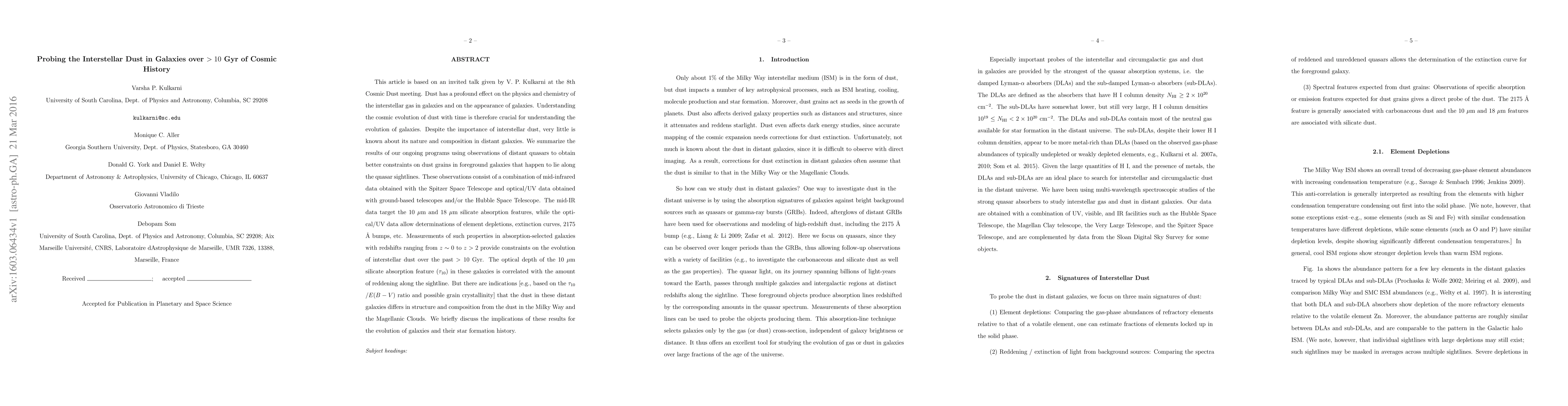 This study, based on observations of distant quasars, uses Spitzer and Hubble data to analyze foreground galaxy dust over 10 Gyr of cosmic history. Findings suggest distant galaxy dust differs in structure and composition from Milky Way dust, implying significant implications for galaxy evolution and star formation history.