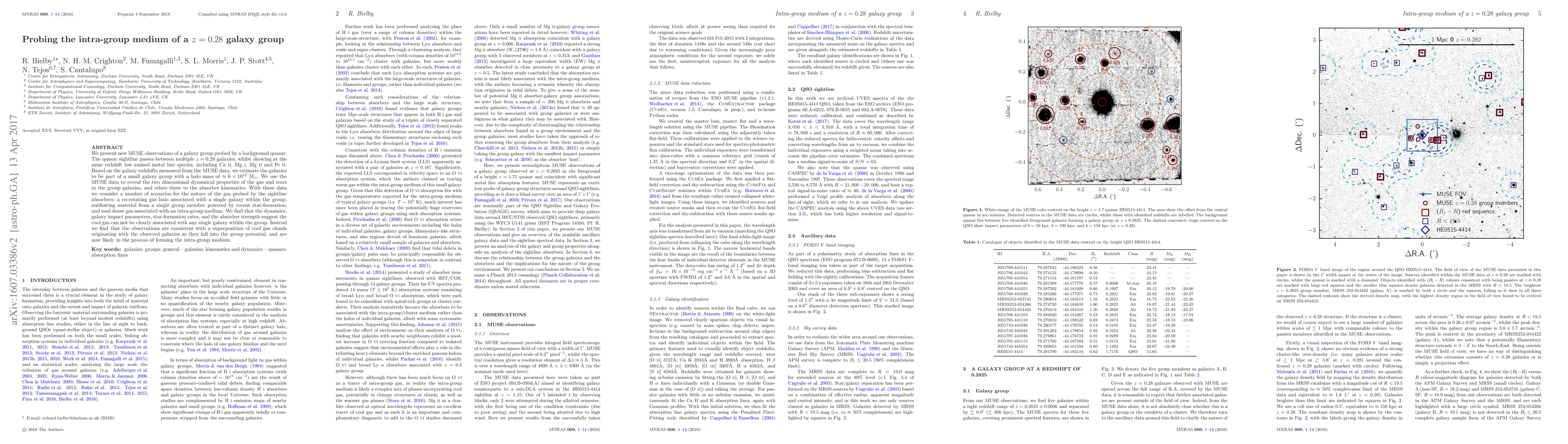 This paper uses MUSE observations of a galaxy group at z=0.28 to investigate the intra-group medium via a background quasar sightline. The data suggest that the cool gas observed is not associated with any single galaxy but rather forms a superposition of gas clouds likely contributing to the intra-group medium as galaxies fall into the group potential.