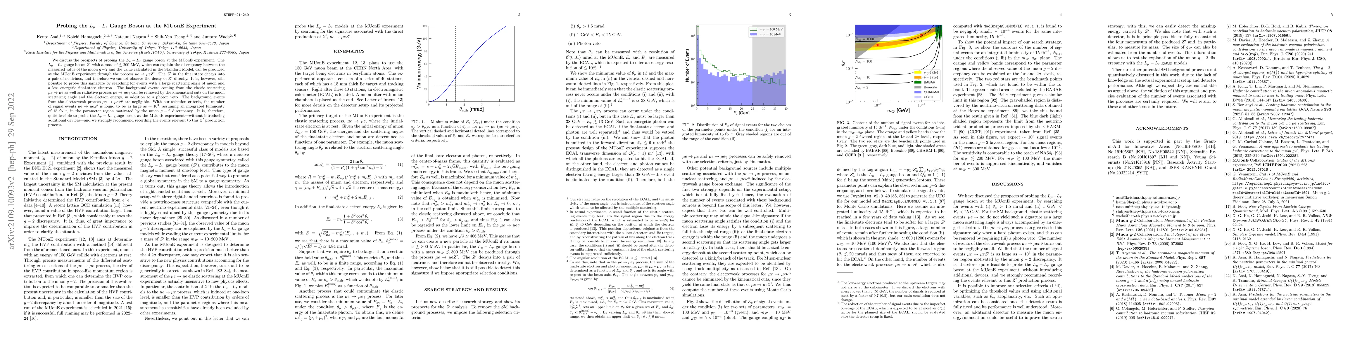 We discuss the prospects of probing the $L_\mu - L_\tau$ gauge boson at the MUonE experiment. The $L_\mu - L_\tau$ gauge boson $Z^\prime$ with a mass of $\lesssim 200$ MeV, which can explain the discrepancy between the measured value of the muon $g-2$ and the value calculated in the Standard Model, can be produced at the MUonE experiment through the process $\mu e \to \mu e Z^\prime$. The $Z^\prime$ in the final state decays into a pair of neutrinos, and therefore we cannot observe the decay of $Z^\prime$ directly. It is, however, still possible to probe this signature by searching for events with a large scattering angle of muon and a less energetic final-state electron. The background events coming from the elastic scattering $\mu e \to \mu e$ as well as radiative process $\mu e \to \mu e \gamma$ can be removed by the kinematical cuts on the muon scattering angle and the electron energy, in addition to a photon veto. The background events from the electroweak process $\mu e \to \mu e \nu \bar{\nu}$ are negligible. With our selection criteria, the number of signal events $\mu e \to \mu e Z^\prime$ is found to be as large as $\sim 10^3$ in the parameter region motivated by the muon $g-2$ discrepancy. It is, therefore, quite feasible to probe the $L_\mu - L_\tau$ gauge boson at the MUonE experiment -- without introducing additional devices -- and we strongly recommend recording the events relevant to this $Z^\prime$ production process.
