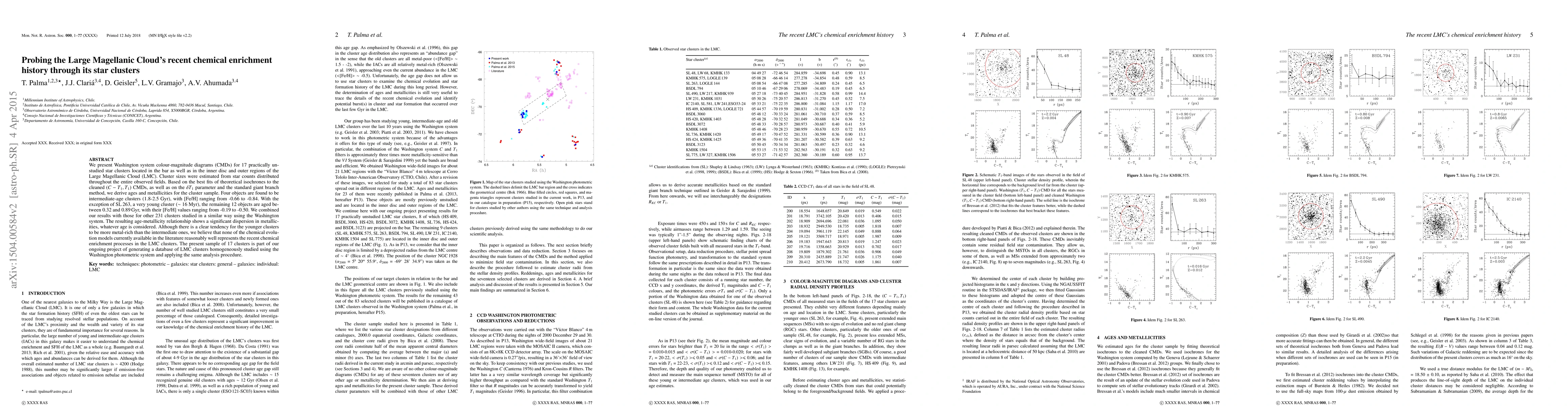 This study presents Washington system CMDs for 17 unstudied LMC star clusters, deriving ages and metallicities. Key findings include four intermediate-age clusters (1.8-2.5 Gyr) with metallicities -0.66 to -0.84, and 12 younger clusters (0.32-0.89 Gyr) with metallicities -0.19 to -0.50. The age-metallicity relationship shows significant dispersion, indicating current chemical evolution models don't accurately represent recent enrichment processes in LMC clusters.