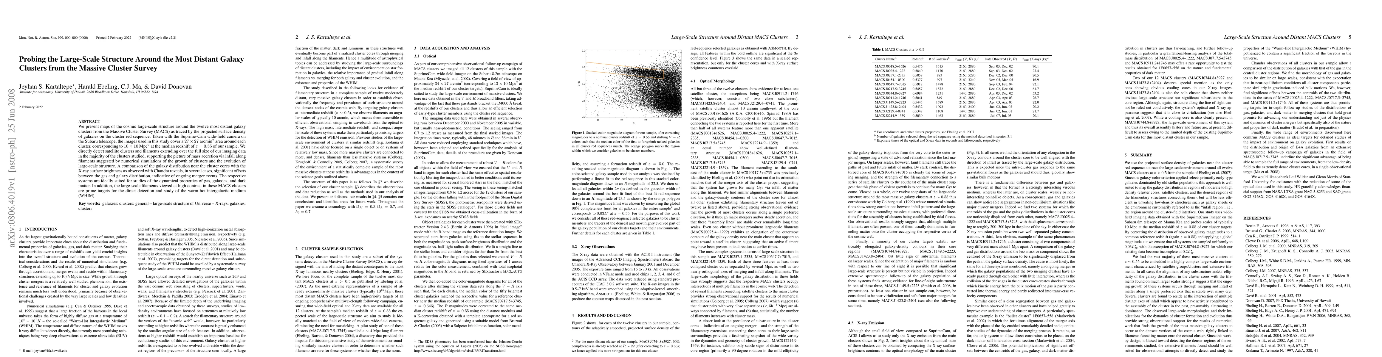 This study maps the large-scale structure around twelve distant galaxy clusters using the red sequence galaxy distribution, revealing satellite clusters and filaments. The findings support mass accretion via filamentary infall and indicate ongoing merger events, making these clusters ideal for studying the dynamics of gas, galaxies, and dark matter, as well as the warm-hot intergalactic medium.