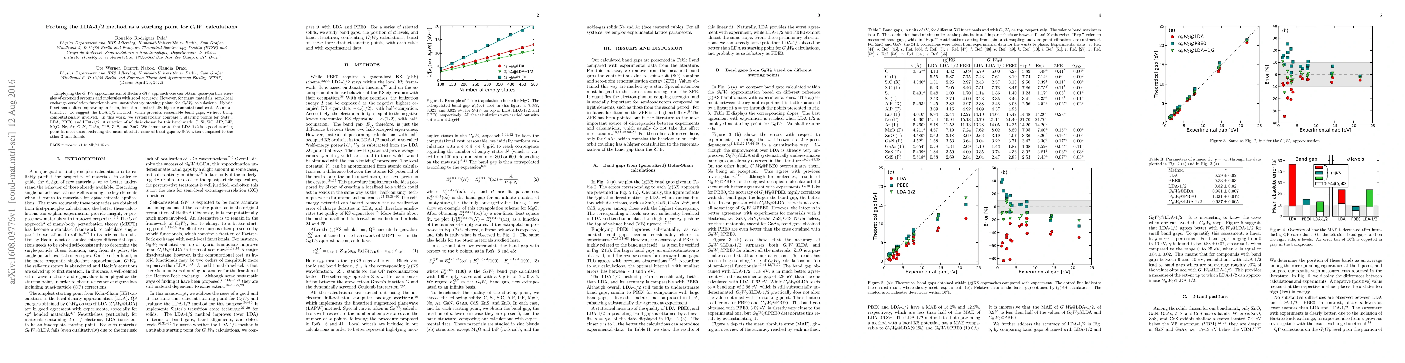 This paper investigates the LDA-1/2 method as an efficient starting point for $G_0W_0$ calculations, comparing it to LDA and PBE0. The results show that LDA-1/2 significantly reduces the mean absolute error of band gaps by 50% compared to the other methods, making it a viable alternative for accurate quasi-particle energy calculations.