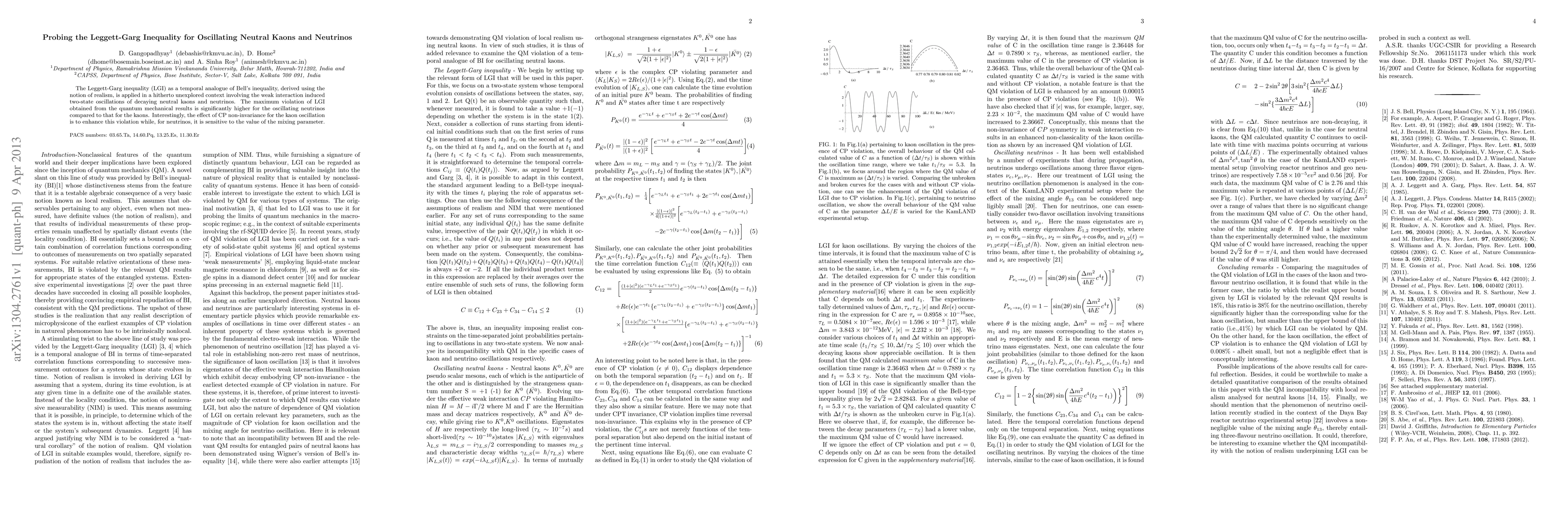 The Leggett-Garg inequality, a temporal analogue of Bell's inequality, is tested in neutral kaons and neutrinos undergoing weak interaction-induced oscillations. Quantum mechanical results show a greater violation of the LGI in neutrinos compared to kaons, with CP non-invariance enhancing the violation in kaons and the mixing parameter influencing it in neutrinos.