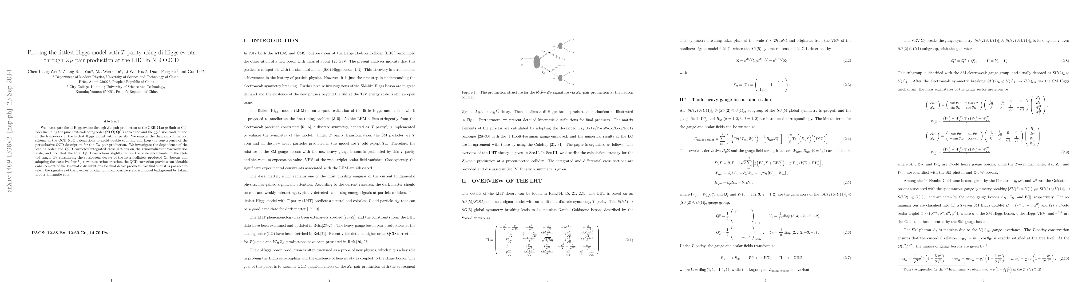 We investigate the di-Higgs events through $Z_H$-pair production at the CERN Large Hadron Collider including the pure next-to-leading order (NLO) QCD correction and the $gg$-fusion contribution in the framework of the littlest Higgs model with $T$ parity. We employ the diagram subtraction scheme in the QCD NLO calculations to avoid double counting and keep the convergence of the perturbative QCD description for the $Z_H$-pair production. We investigate the dependence of the leading order and QCD corrected integrated cross sections on the renormalization/factorization scale, and find that the total QCD corrections slightly reduce the scale uncertainty in the plotted range. By considering the subsequent decays of the intermediately produced $Z_H$ bosons and adopting the exclusive four-$b$-jet event selection criterion, the QCD correction provides considerable enhancement of the kinematic distributions for final decay products. We find that it is possible to select the signature of the $Z_H$-pair production from possible standard model background by taking proper kinematic cuts.