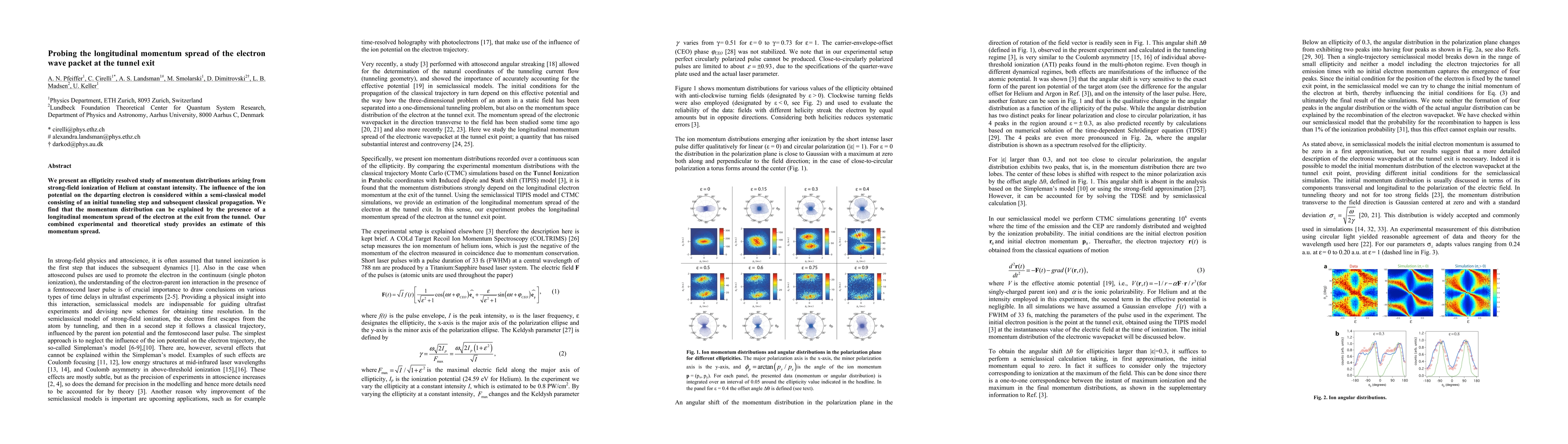 We present an ellipticity resolved study of momentum distributions arising from strong-field ionization of Helium at constant intensity. The influence of the ion potential on the departing electron is considered within a semi-classical model consisting of an initial tunneling step and subsequent classical propagation. We find that the momentum distribution can be explained by the presence of a longitudinal momentum spread of the electron at the exit from the tunnel. Our combined experimental and theoretical study provides an estimate of this momentum spread.