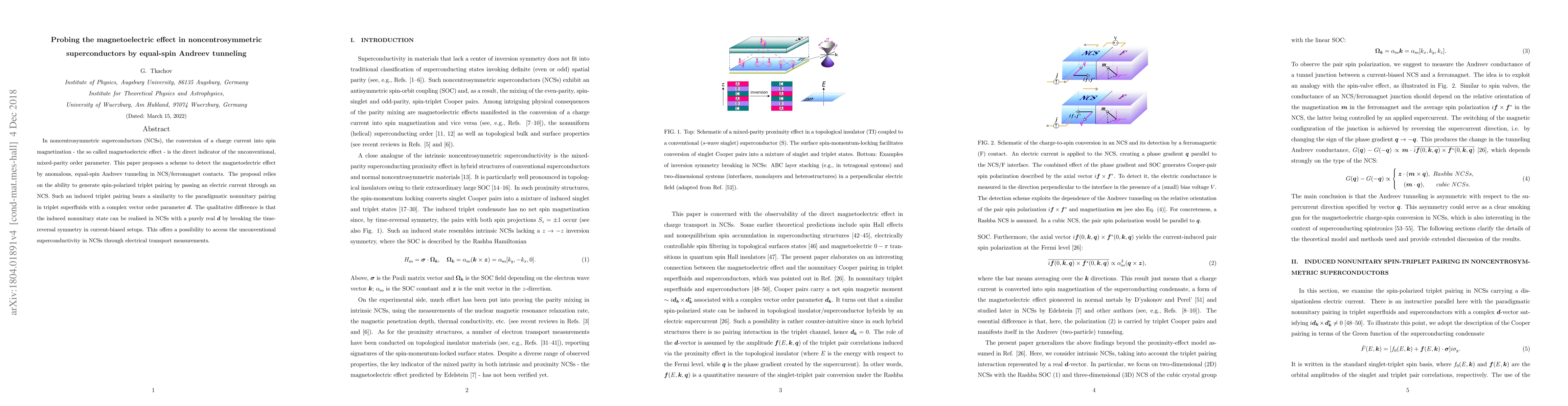 This paper proposes a method to detect the magnetoelectric effect in noncentrosymmetric superconductors via anomalous, equal-spin Andreev tunneling in NCS/ferromagnet junctions. The approach leverages induced spin-polarized triplet pairing generated by electric current, enabling electrical transport measurements to reveal unconventional superconductivity.