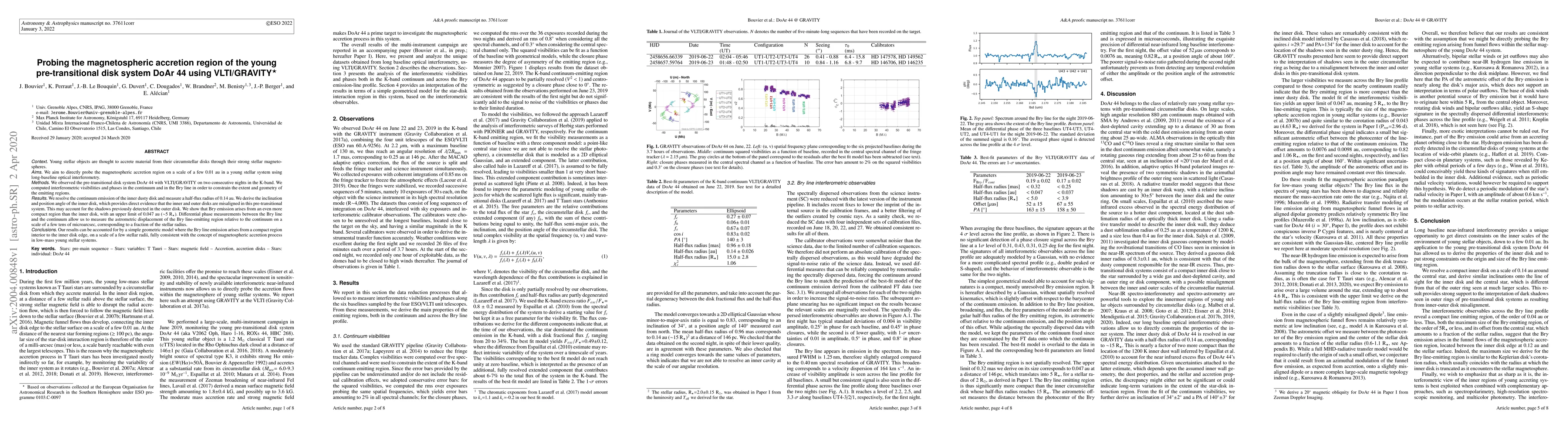 This study uses VLTI/GRAVITY to directly probe the magnetospheric accretion region in the young pre-transitional disk system DoAr 44, revealing a misaligned inner and outer disk. The BrG emission is found to originate from a compact region within the inner disk, supporting the magnetospheric accretion model.