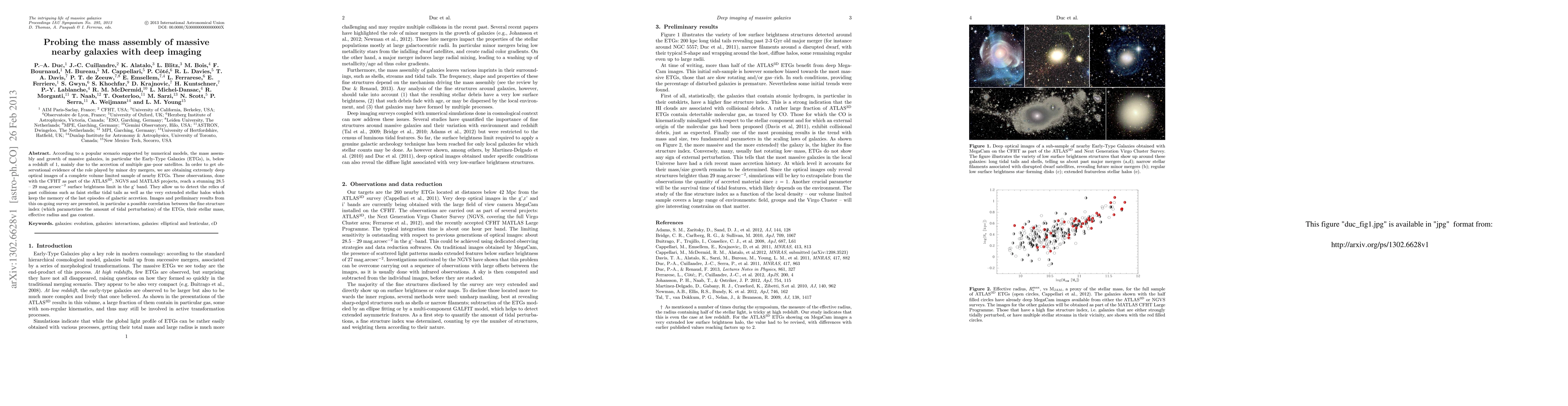 According to a popular scenario supported by numerical models, the mass assembly and growth of massive galaxies, in particular the Early-Type Galaxies (ETGs), is, below a redshift of 1, mainly due to the accretion of multiple gas--poor satellites. In order to get observational evidence of the role played by minor dry mergers, we are obtaining extremely deep optical images of a complete volume limited sample of nearby ETGs. These observations, done with the CFHT as part of the \AD, NGVS and MATLAS projects, reach a stunning 28.5)29 mag.arcsec-2 surface brightness limit in the g' band. They allow us to detect the relics of past collisions such as faint stellar tidal tails as well as the very extended stellar halos which keep the memory of the last episodes of galactic accretion. Images and preliminary results from this on-going survey are presented, in particular a possible correlation between the fine structure index (which parametrizes the amount of tidal perturbation) of the ETGs, their stellar mass, effective radius and gas content.