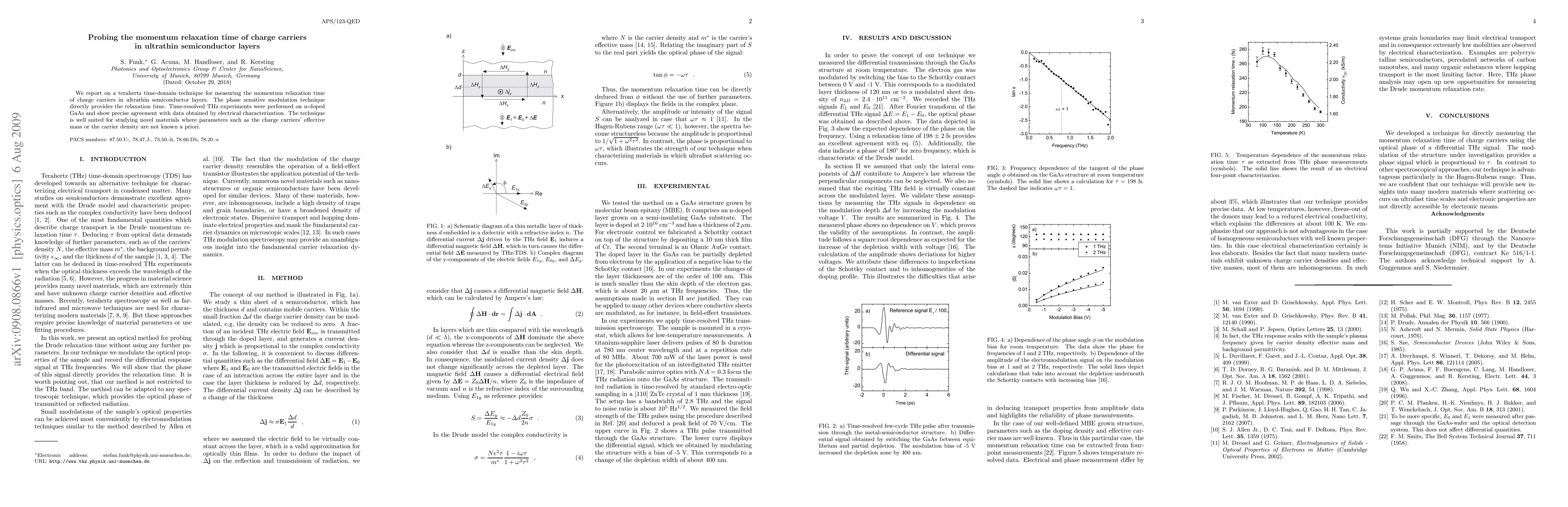 This paper introduces a novel terahertz time-domain technique to measure the momentum relaxation time of charge carriers in ultrathin semiconductor layers, demonstrating its effectiveness with n-doped GaAs and potential for studying new materials with unknown parameters.