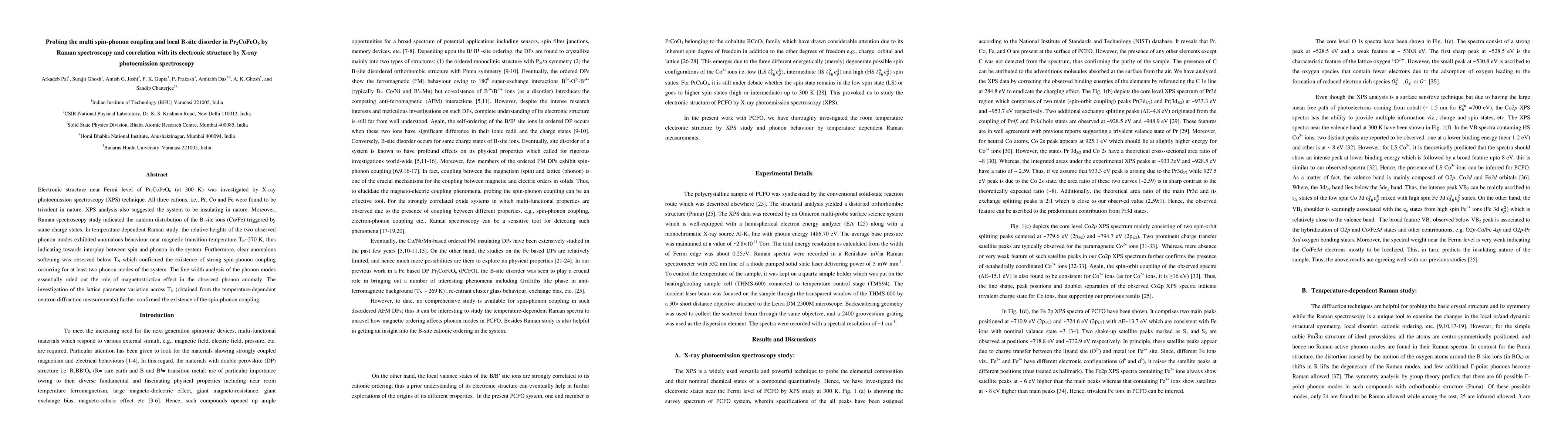 The research uses X-ray photoemission spectroscopy (XPS) to confirm all cations in Pr2CoFeO6 are trivalent and the system is insulating. Raman spectroscopy reveals random B-site ion (Co/Fe) distribution, anomalous phonon mode behavior near magnetic transition temperature TN~270 K, and strong spin-phonon coupling evidenced by phonon softening below TN. Lattice parameter variation confirms spin-phonon coupling, excluding magnetostriction effects.