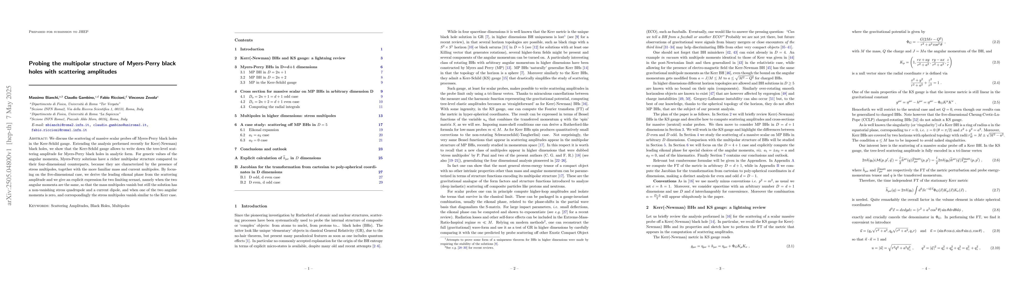 The research used scattering amplitudes to analyze the behavior of massive scalar probes off Myers-Perry black holes in the Kerr-Schild gauge.