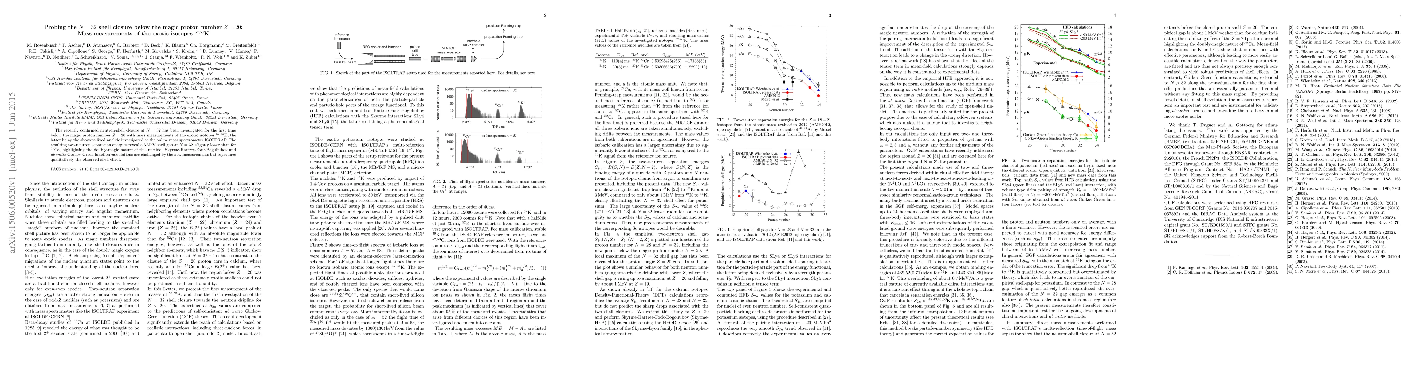 Research investigates the N=32 neutron-shell closure below Z=20 for exotic isotopes 52,53K, revealing a 3 MeV shell gap and challenging existing calculations.