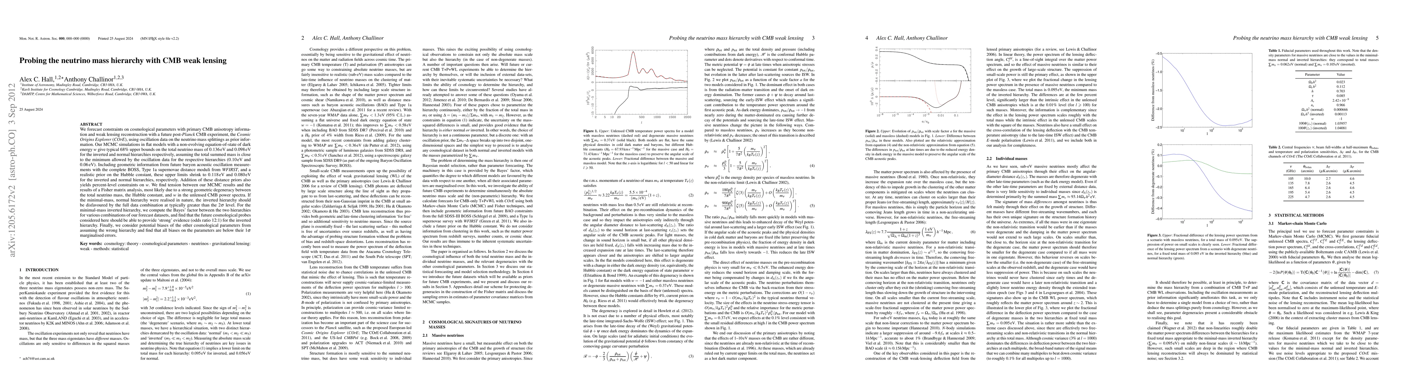 This study forecasts constraints on neutrino mass hierarchies using future CMB and weak lensing experiments, setting upper bounds of 0.118 eV for the normal hierarchy and 0.080 eV for the inverted hierarchy.
