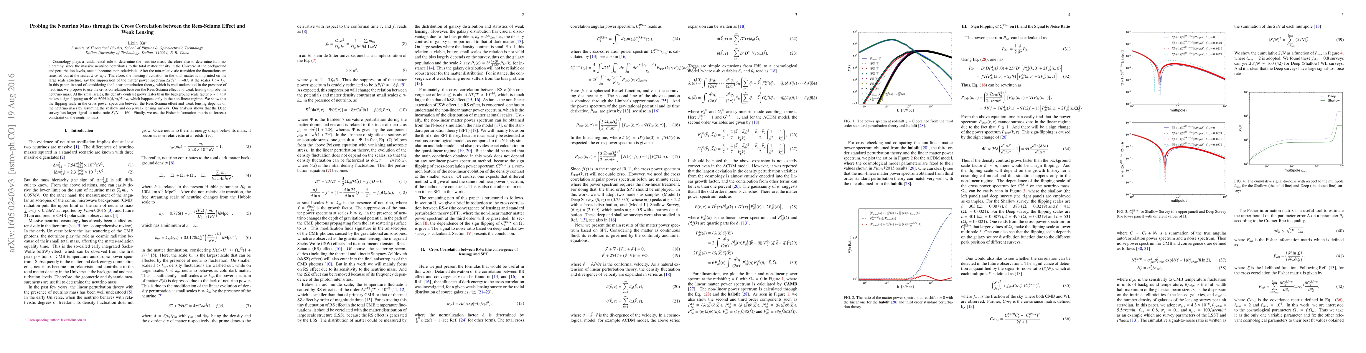 Cosmology plays a fundamental role to determine the neutrino mass, therefore also to determine its mass hierarchy, since the massive neutrino contributes to the total matter density in the Universe at the background and perturbation levels, once it becomes non-relativistic. After the non-relativistic transition the fluctuations are smashed out at the scales $k\gg k_{fs}$. Therefore, the missing fluctuation in the total matter is imprinted on the large scale structure, say the suppression of the matter power spectrum $\Delta P/P\approx -8f_{\nu}$ at the scales $k\gg k_{fs}$. In this paper, instead of considering the linear perturbation theory, which is well understood in the presence of neutrino, we propose to use the cross correlation between the Rees-Sciama effect and weak lensing to probe the neutrino mass. At the small scales, the density contrast grows faster than the background scale factor $\delta\sim a$, that makes a sign flipping on $\Phi' \propto \mathcal{H}\delta d\ln (\delta/a)/d\ln a$, which happens only in the non-linear regime. We show that the flipping scale in the cross power spectrum between the Rees-Sciama effect and weak lensing depends on the neutrino mass by assuming the shallow and deep weak lensing surveys. Our analysis shows that the Deep survey has larger signal-to-noise ratio $S/N\sim 160$. Finally, we use the Fisher information matrix to forecast constraint on the neutrino mass.